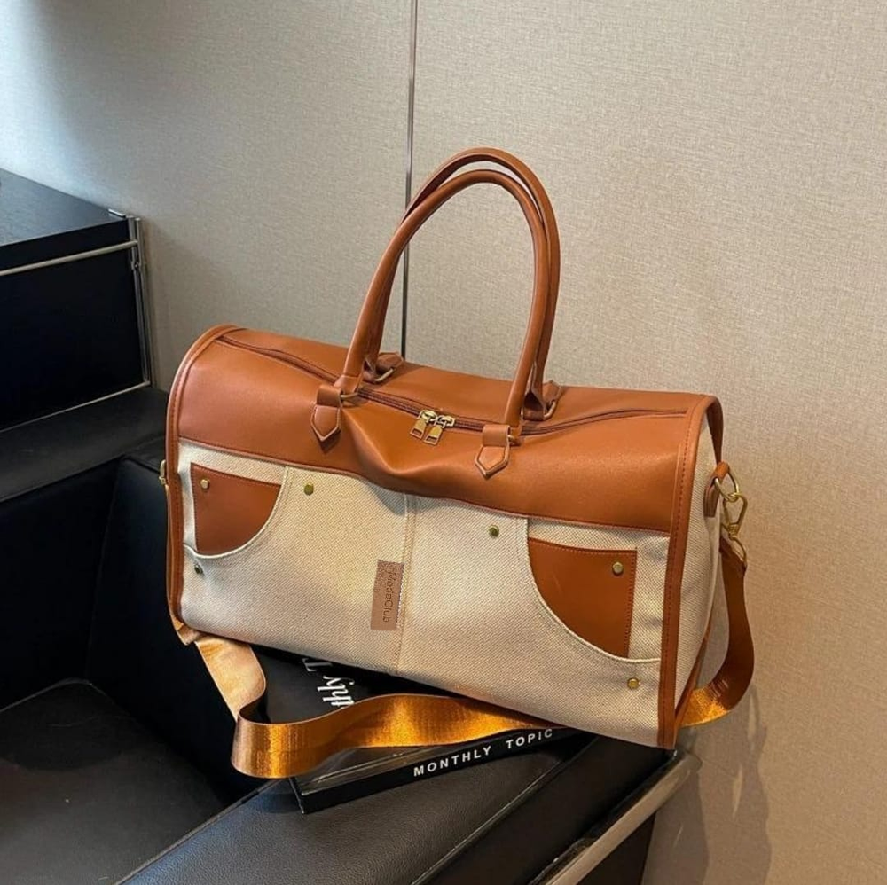 (Bolso de Viaje de gran capacidad, diseñado para apoyar arriba de la valija. Cuenta con su correa larga para poder llevarlo cómodamente. Disponible en 2 colores. Cuenta con dos bolsillos por fuera, dos internos y un bolsillo para húmedos ).