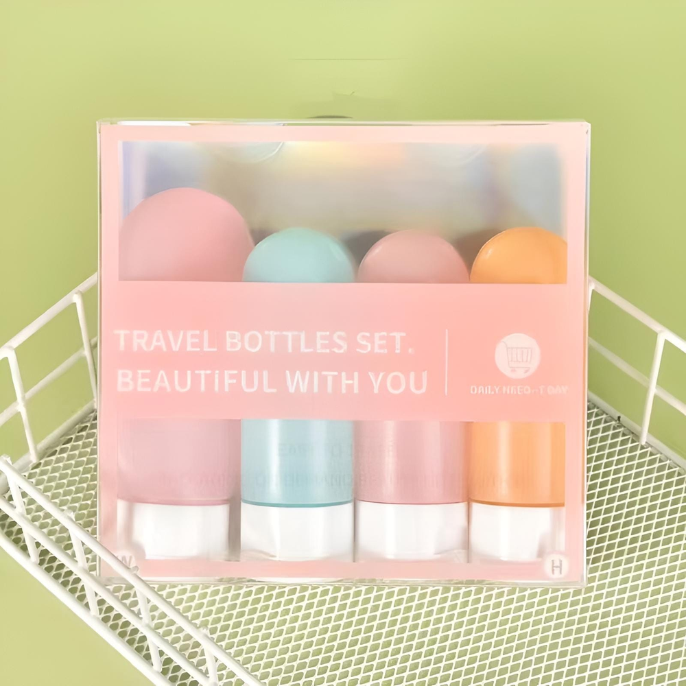 (Set x 4U. Neceser de viaje, que cuenta con 4 envases que son un material de plástico. ideal para poder sacar el producto fácilmente presionándolo. Son super útiles a la hora de llevarlos de viaje, ya que por su tamaño no ocupan espacio).