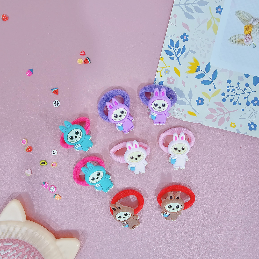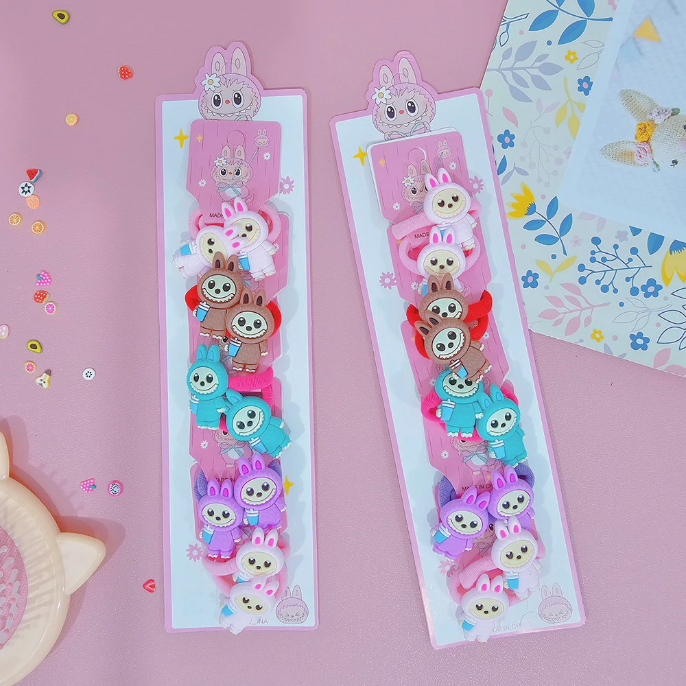 (Pack x12 Blíster Colita Labubu. Colitas que cuentan con una figura de goma de "labubu" y con diversos colores, Ideales para los peinados de niñas).