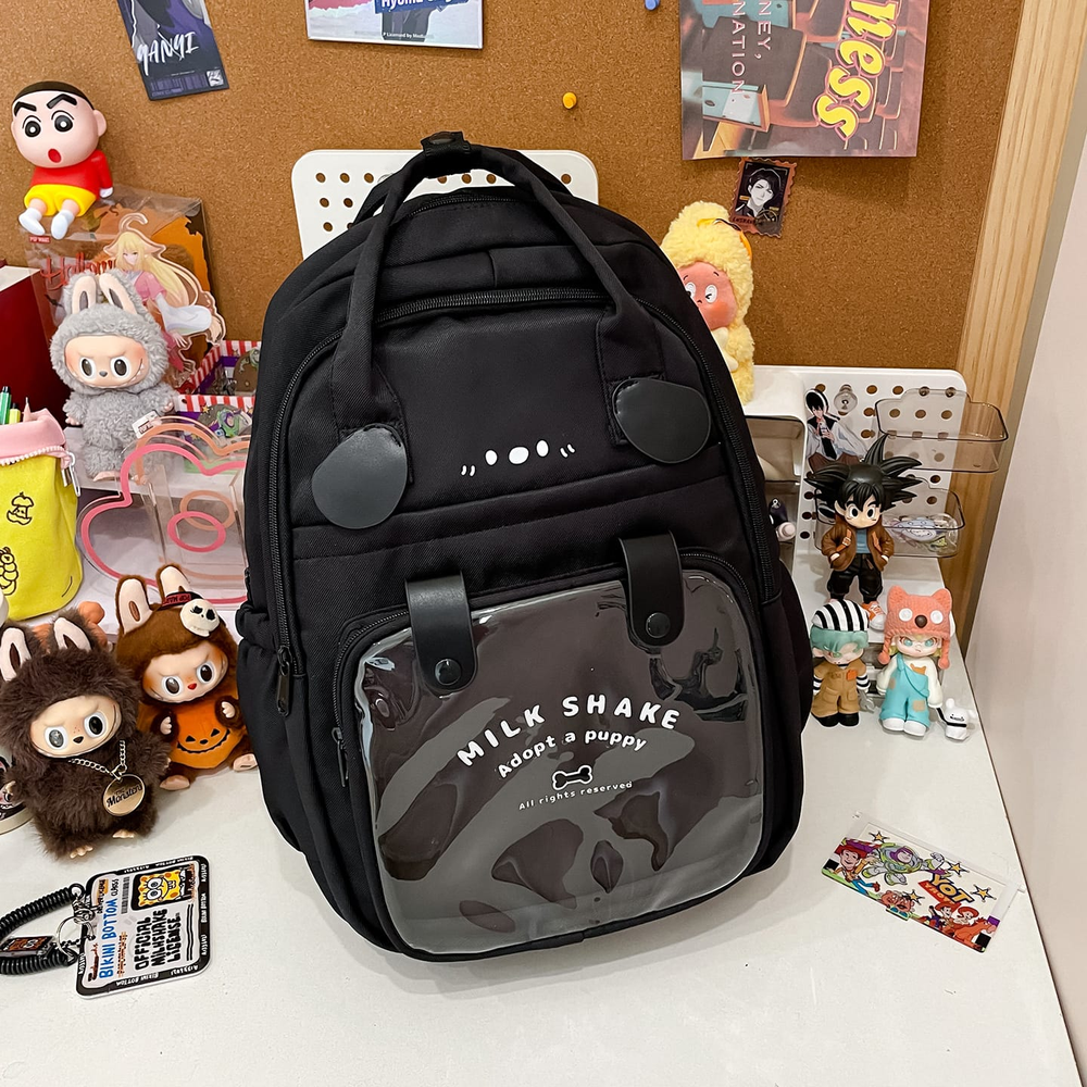 (Mochila escolar o casual, diseñada para llevar libros, útiles escolares, laptops, ropa, botellas de agua y otros objetos personales de forma cómoda y organizada Dispone de un compartimiento principal con bolsillo interno , 3 compartimientos frontales, 2 bolsillos laterales y tiras acolchadas ).