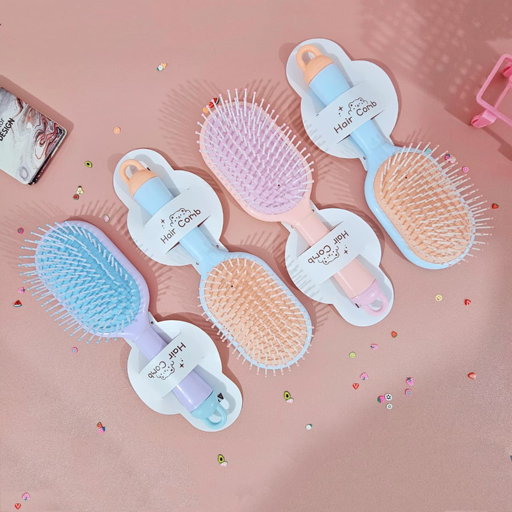 (Cepillo de pelo con cojín y espejo en la parte trasera. previene la estática. Disponible en tres colores ).