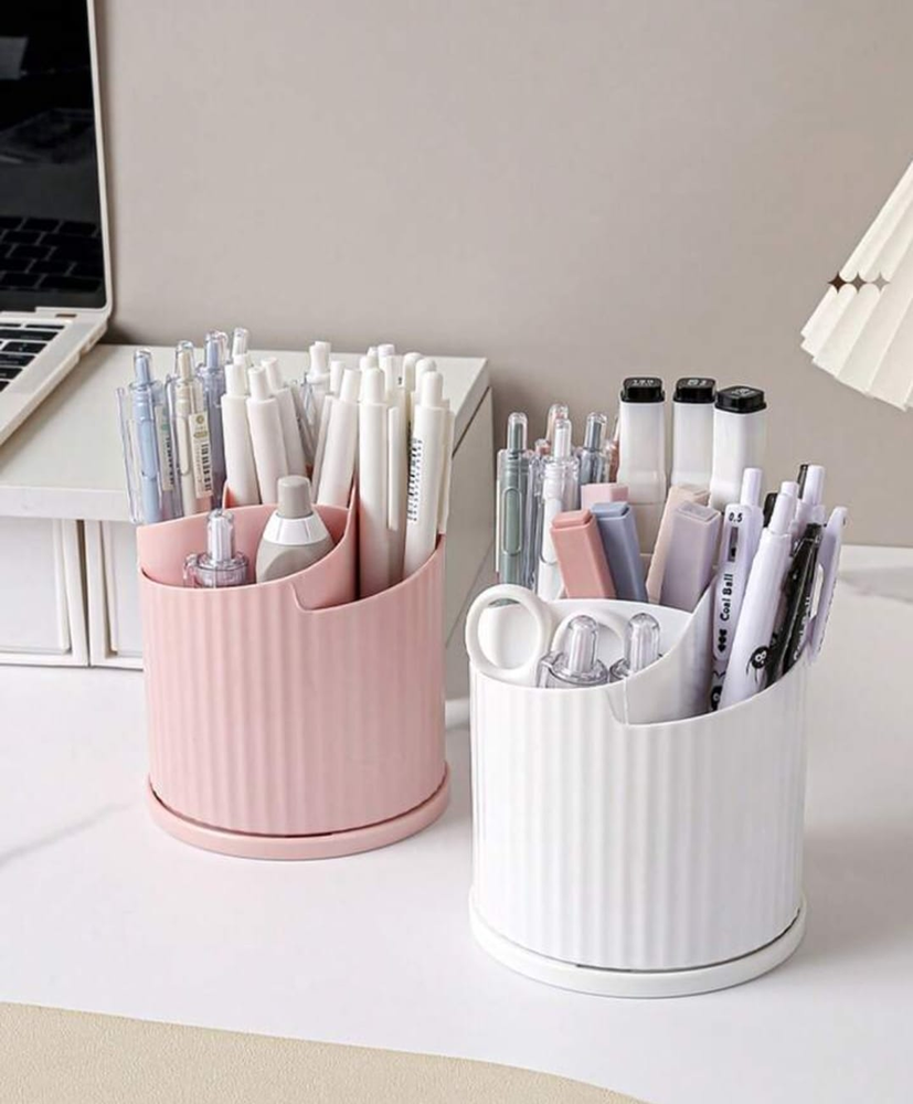 (Portacosmetico diseñado para mantener ordenados artículos como bolígrafos, marcadores, tijeras y otros útiles de oficina o cosméticos. Ayuda a reducir el desorden y mejorar la productividad al facilitar el acceso a los elementos esenciales).
