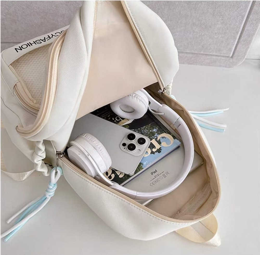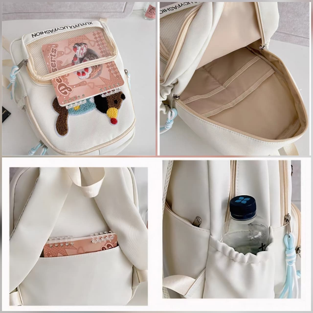 (Cuenta con un compartimiento principal con bolsillo interno, dos bolsillo frontales (uno de ellos con visor que incluye pins de diseños surtidos), dos bolsillo laterales, un bolsillo trasero con cierre y tiras acolchonadas. Sirven para transportar objetos personales en el día a día, como teléfonos, llaves, botellas de agua o artículos pequeños. Su capacidad permite llevar lo necesario para salidas o paseos).