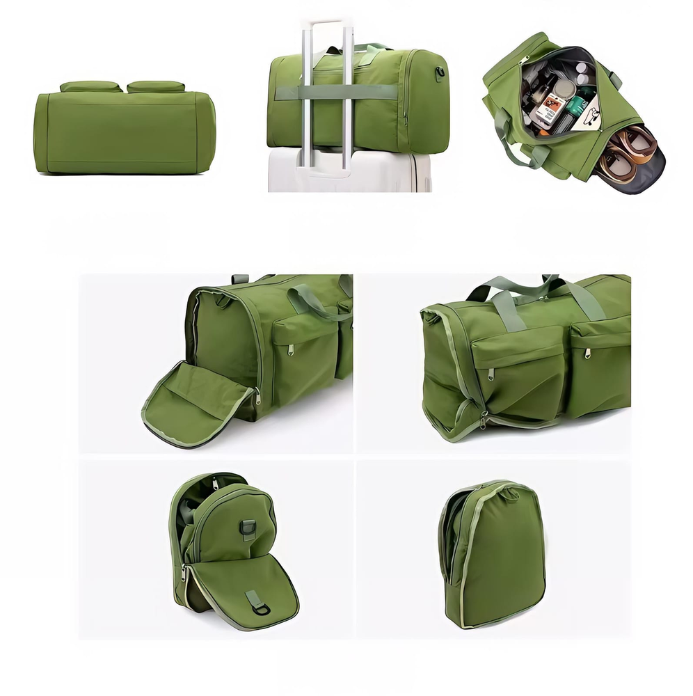 (Bolso de viaje, cuenta con un compartimiento amplio, con tres bolsillos internos (Uno de ellos para húmedos), dos bolsillos frontales, un bolsillo lateral, un compartimiento para zapatos, un bolsillo trasero y una corre larga. Ideal para llevar ropa, artículos personales y otros objetos necesarios para viajes cortos, escapadas de fin de semana o como equipaje de mano en vuelos. ).