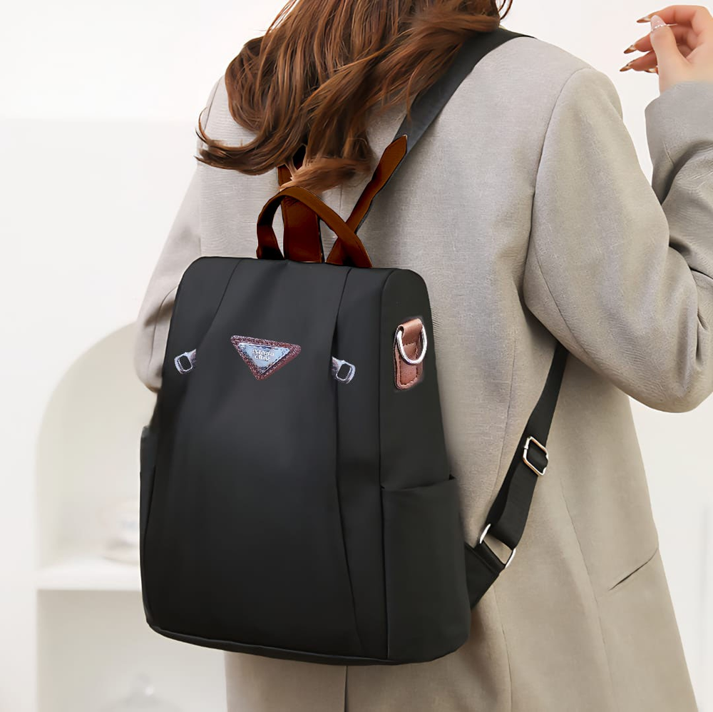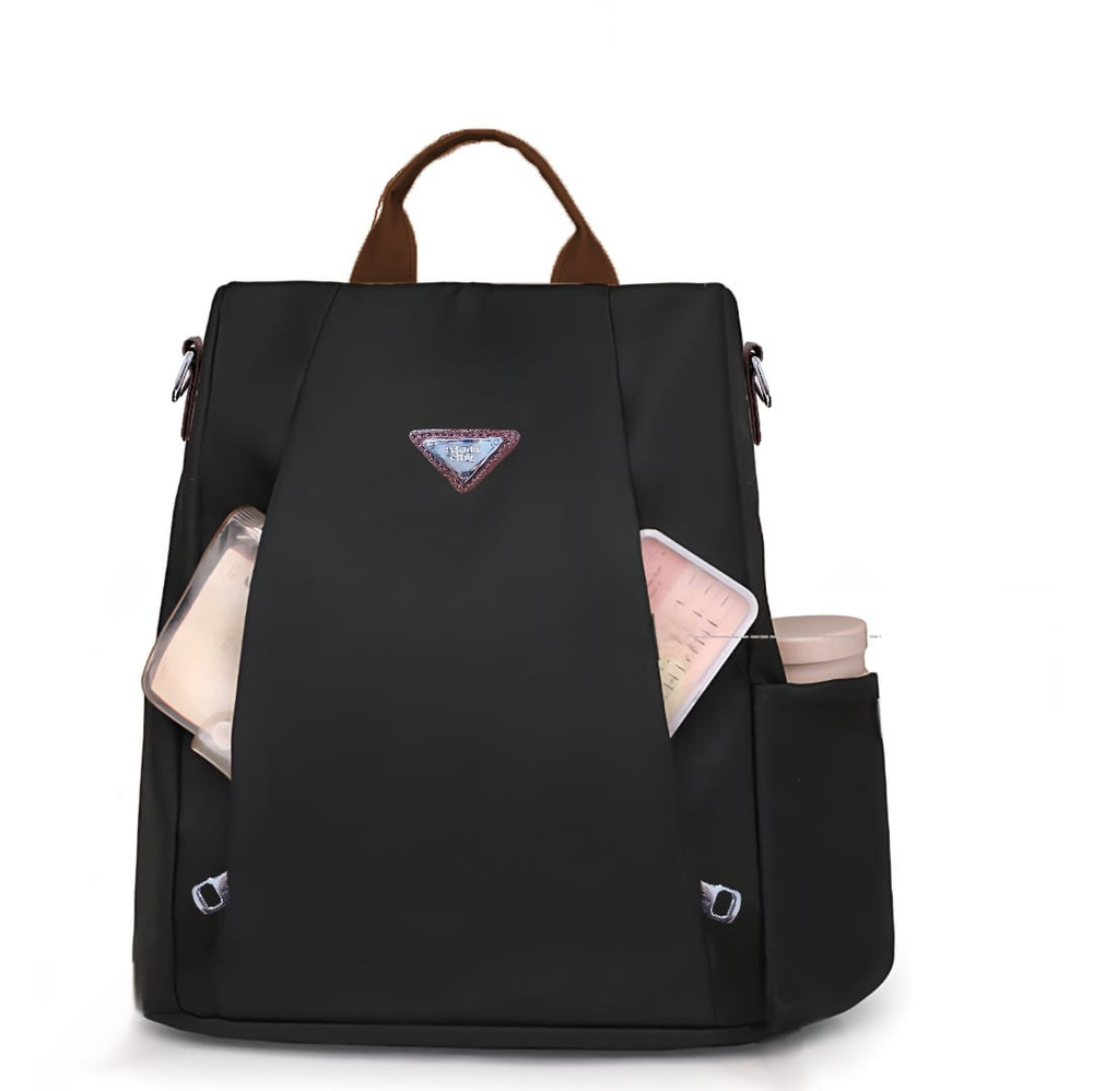 (Cuenta con un compartimiento amplio, tres bolsillos interiores, uno de ellos con cierre, dos bolsillos laterales y un bolsillo frontal con cierre. Permite guardar una variedad de objetos personales como computadoras, teléfonos móviles, carteras, y otros elementos esenciales. Equipada con correas diseñadas para un transporte cómodo).