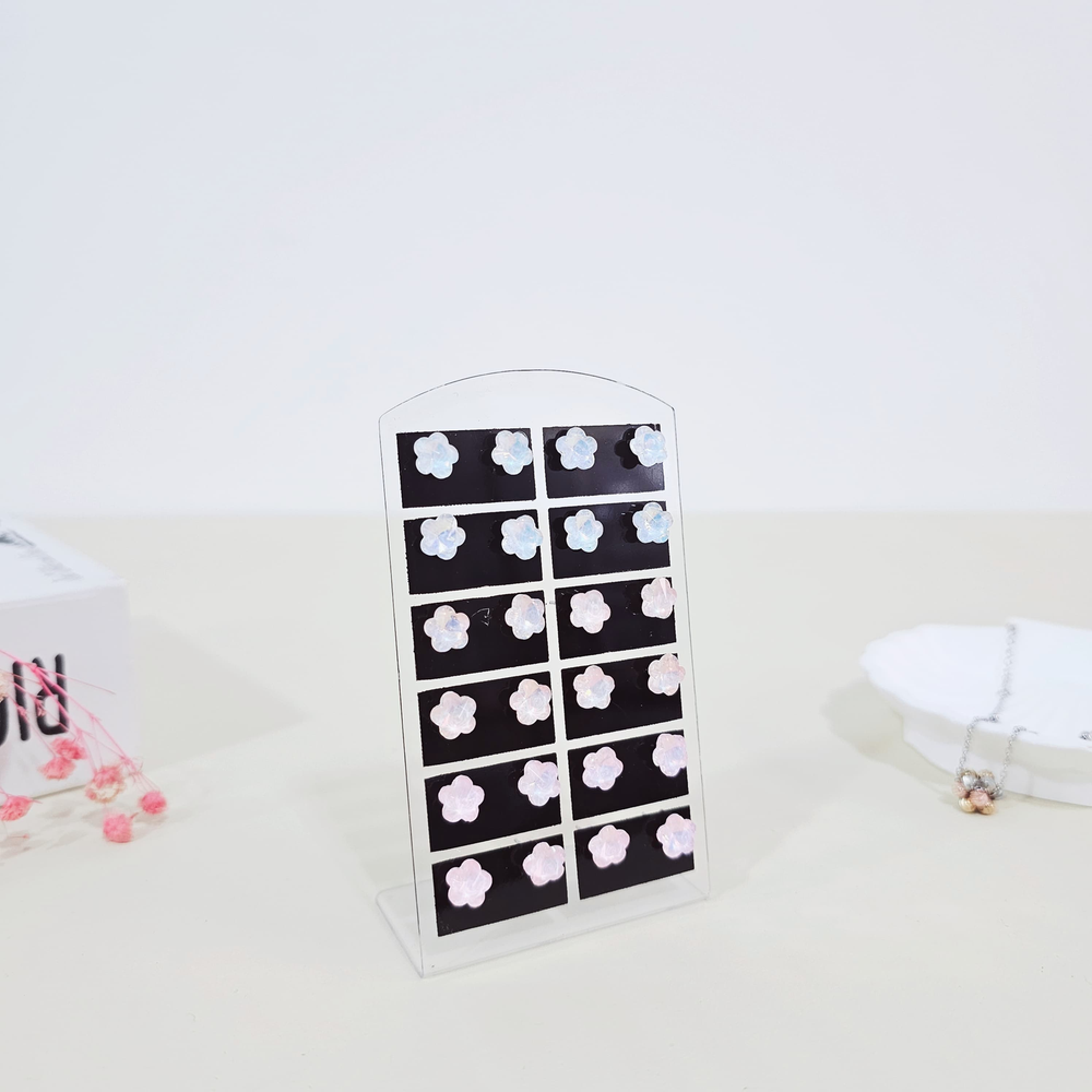 (Pack x12 Blister Aritos surtidos, cuenta con un diseño de Flores tornasoladas. Ideales para poder tener en variedad para ciertas ocasiones).