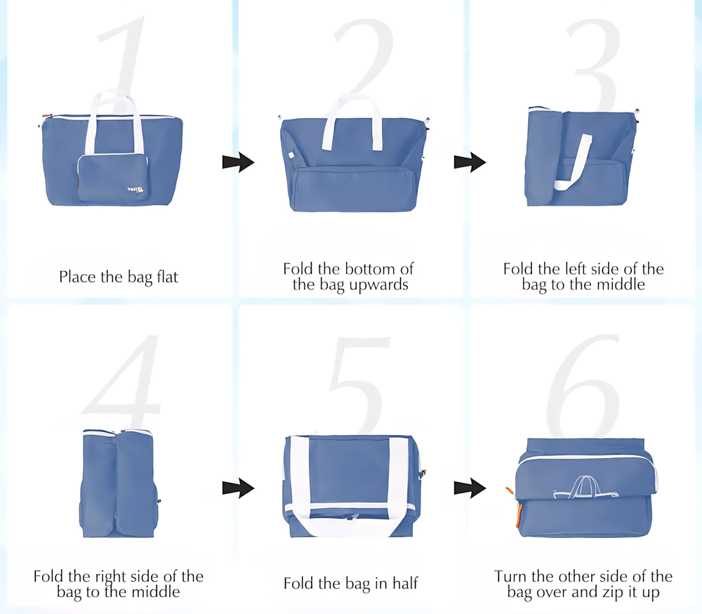 (Bolso de viaje plegable para llevar ropa, artículos personales y otros objetos necesarios para viajes cortos, escapadas de fin de semana o como equipaje de mano en vuelos. Puede ser utilizado para diversas actividades como ir al gimnasio, practicar deportes, o como una bolsa de uso diario. Tiene 1 bolsillo en la parte delantera, es muy fácil, cómodo y práctico tanto desplegar como guardarlo). (Ut28)