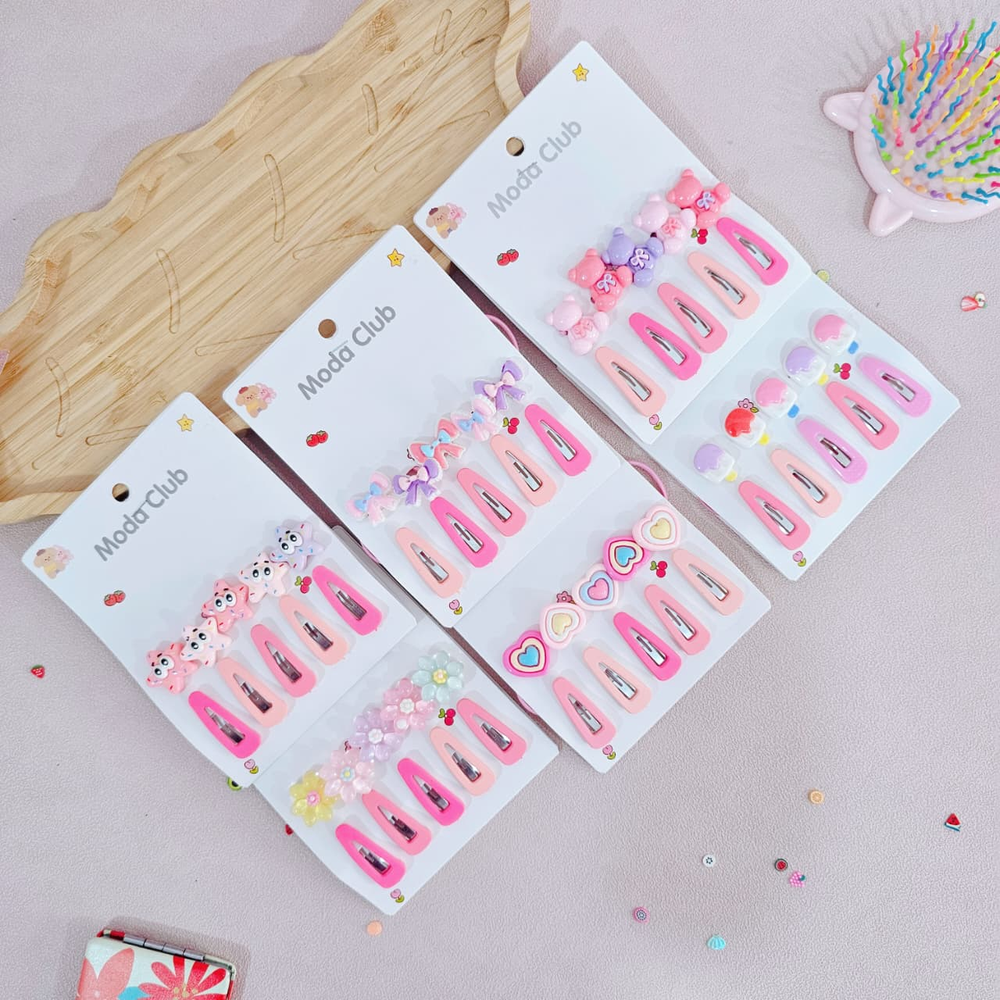 (Pack x 12 Blíster. Cada blíster cuenta con 5 hebillas en distintas formas y 5 colitas para el pelo . Ideal para realizar peinados).