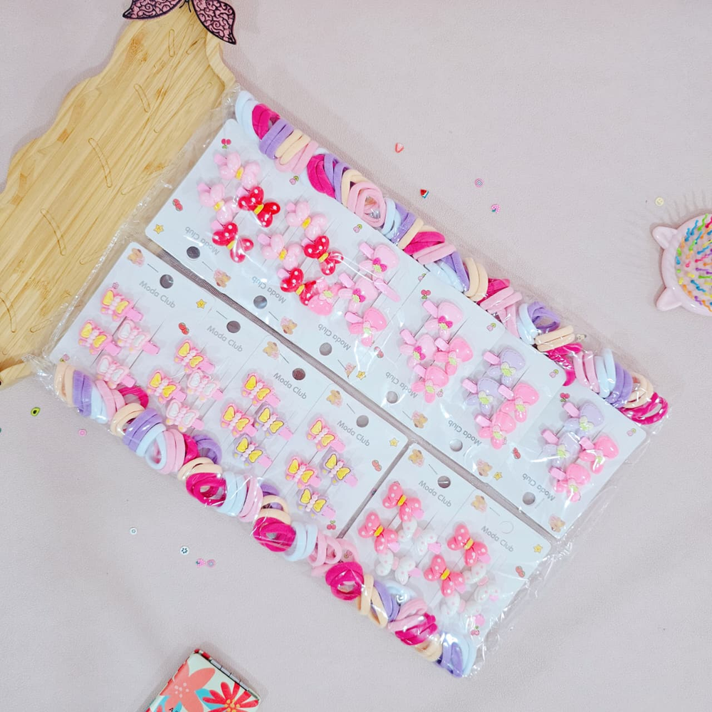 (Pack x 12 Blíster. Cada blíster cuenta con 4 hebillas en distintas formas y 10 colitas para el pelo . Ideal para realizar peinados).