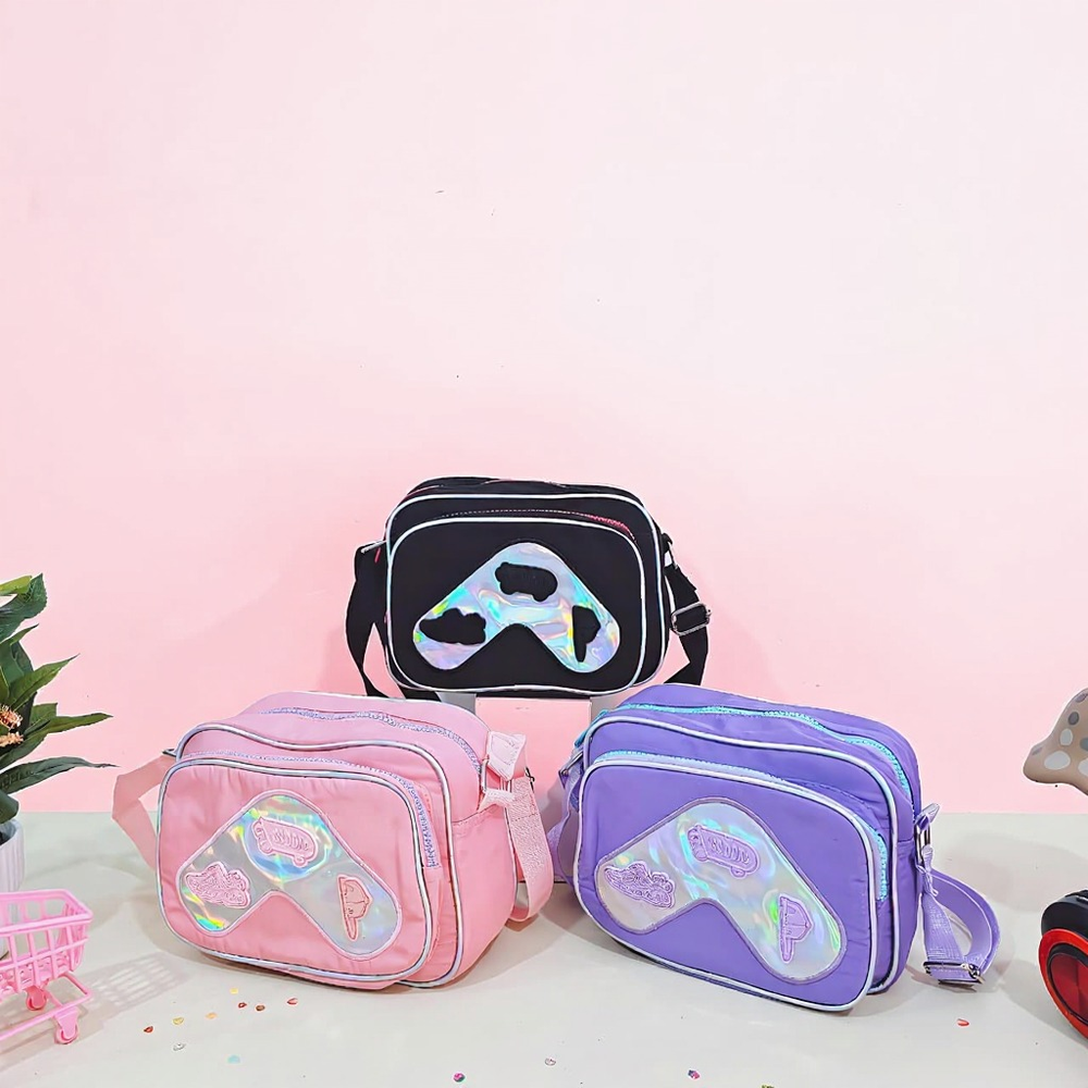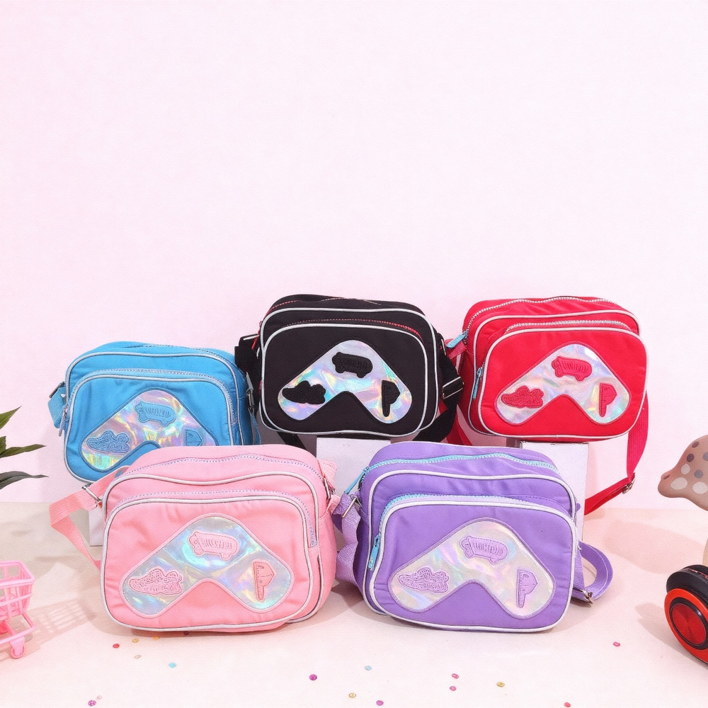 (Bandolera ideal para niñas y teens, disponibles en 5 colores: rosa, fucsia, lila, verde agua y negro. En su interior hay 2 compartimentos 1 bolsillo con cierre, en la parte externa hay 1 bolsillo grande. Tiene correa ajustable en color haciendo juego).