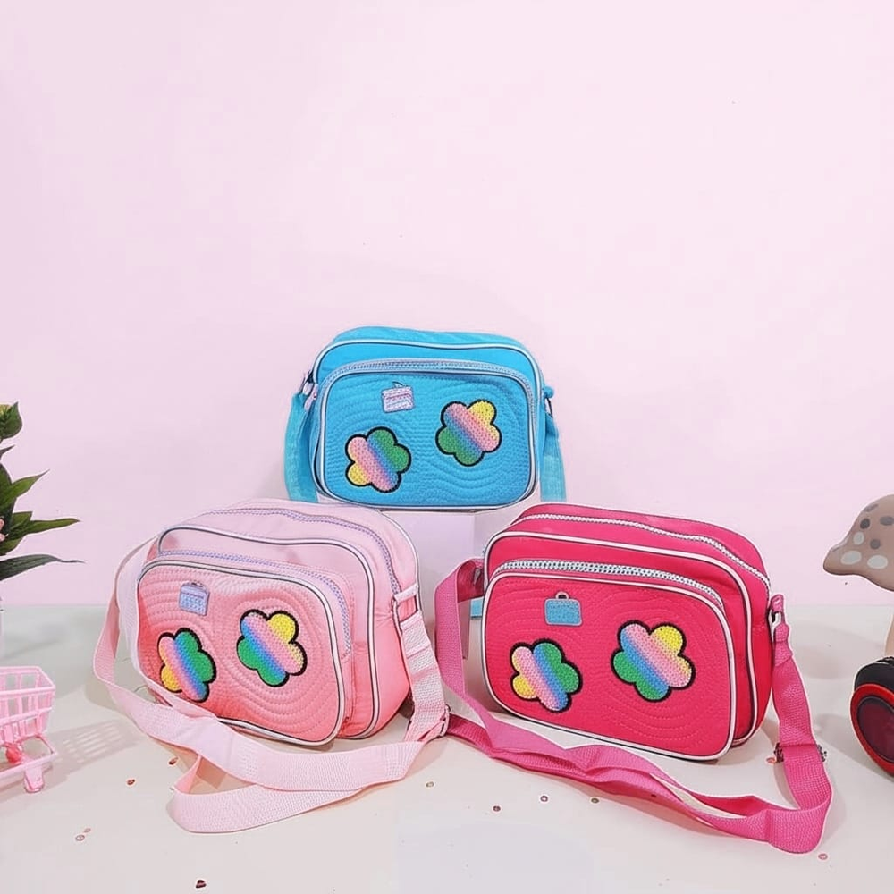 (Bandolera ideal para niñas y teens, disponibles en 5 colores: rosa, fucsia, lila, verde agua y negro. En su interior hay 2 compartimentos 1 bolsillo con cierre, en la parte externa hay 1 bolsillo grande. Tiene correa ajustable en color haciendo juego).
