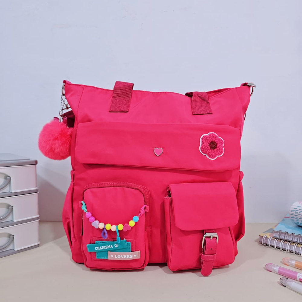 (Bolso grande disponible en 5 colores diferentes. Cuenta con un amplio compartimiento con dos bolsillos internos, un bolsillo frontal amplio + dos pequeños y dos bolsillos laterales, también incluye correa larga. Ideal para llevar cosas como maquillaje, celular o billetera).
