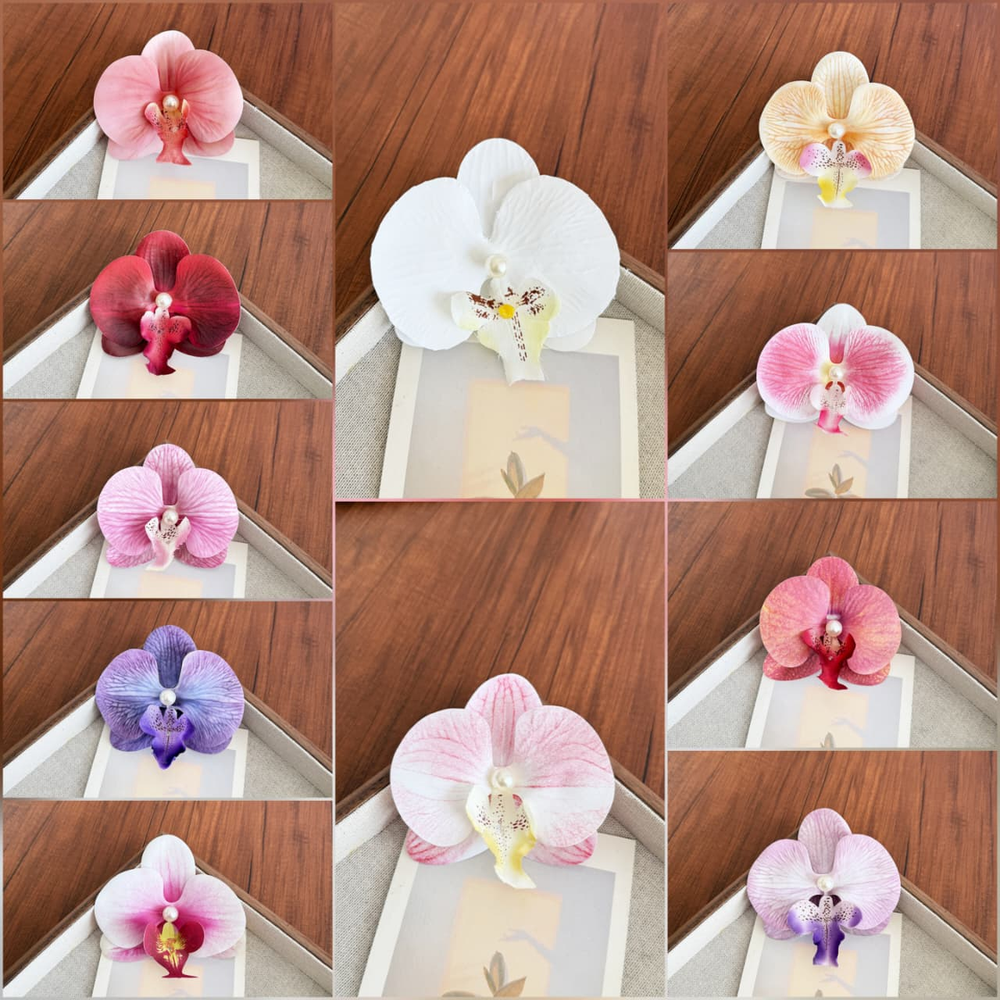 (Pack x 12 hebillas con forma de flor de varios colores. Ideal para usar en cualquier evento o simplemente levantar tu look del día).