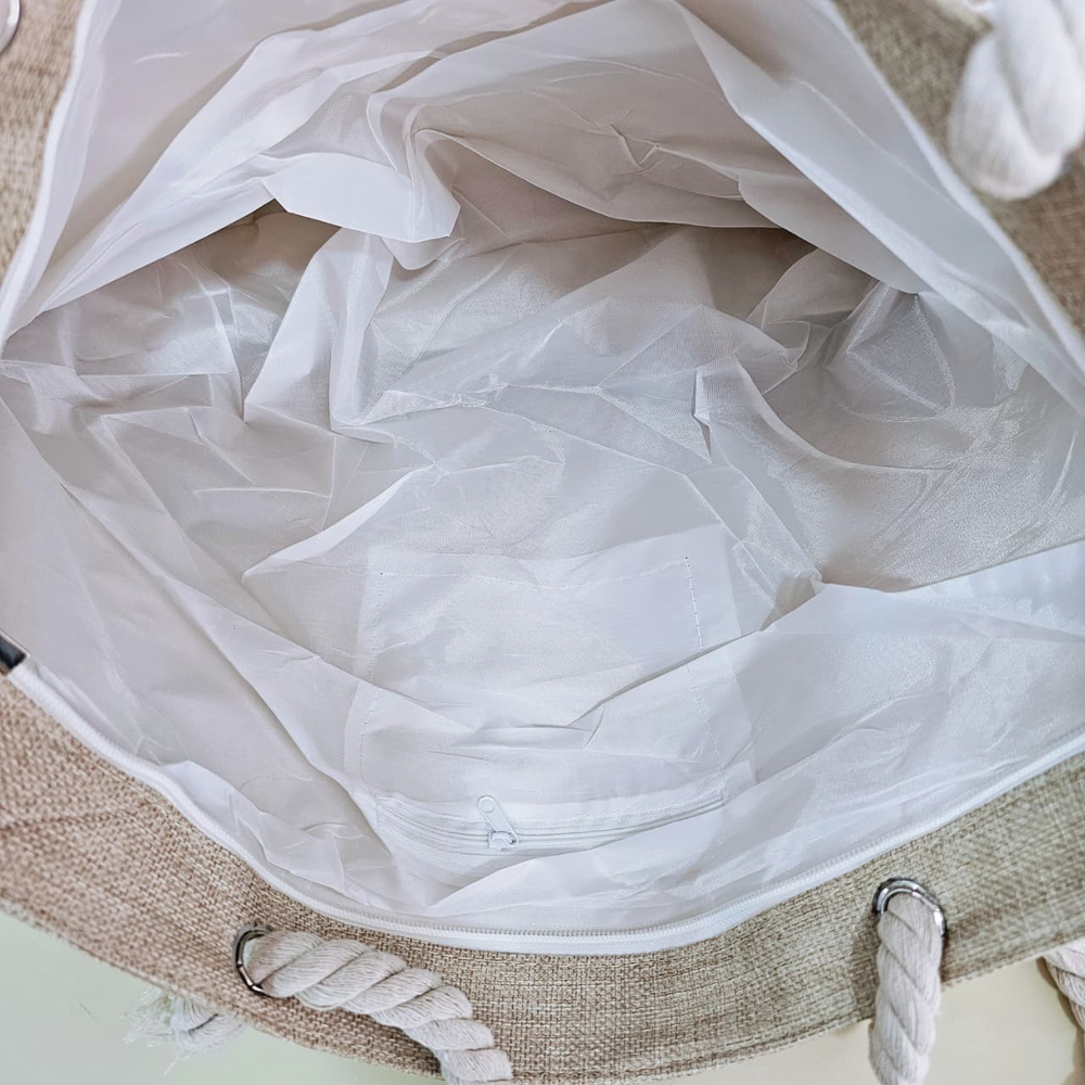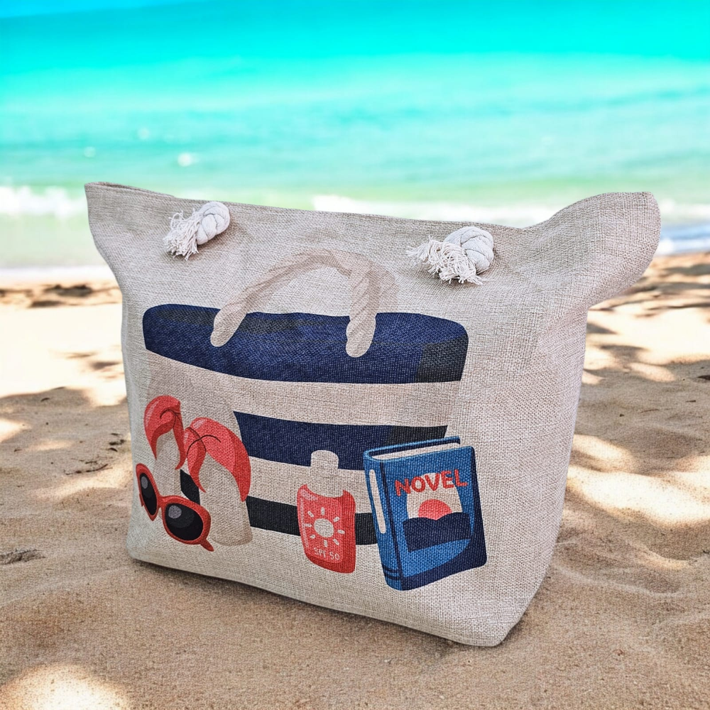 (Bolso playero diseñado para llevar fácilmente toallas, trajes de baño, protector solar, gafas, juguetes de playa y otros elementos esenciales a la playa o la piscina. Cuenta con 1 compartimiento interior. Aunque ideal para la playa, también puede usarse para compras o viajes, gracias a su ligereza, resistencia y facilidad de limpieza).