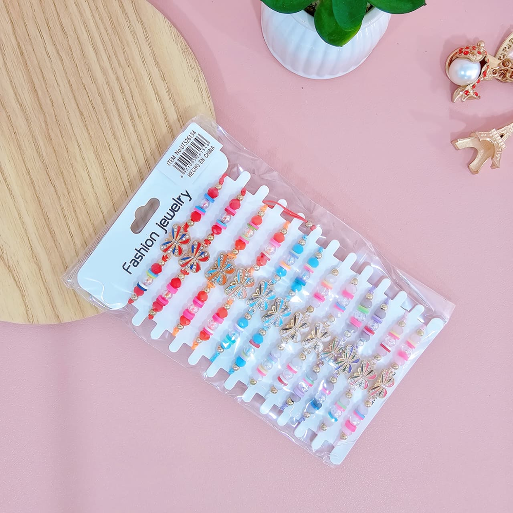 (Blíster con 12 unidades de pulseras, en colores varios. Diseño delicado con correas ajustables.) Ut29