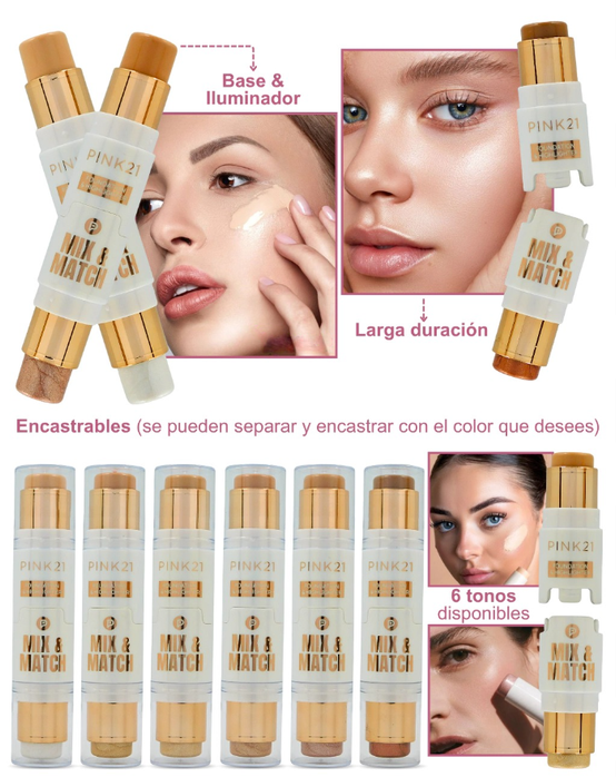 (Rubor y contorno en barra "Pink 21" Encastrables: se pueden separar y encastrar).