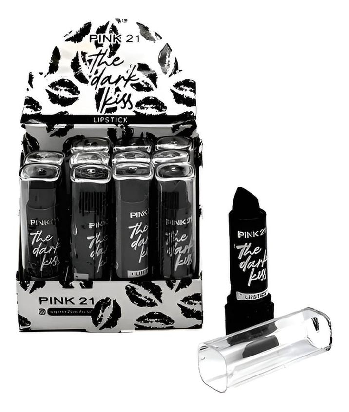 (Caja x 12U. Labial Negro con acabado mate que resalta la intensidad del color. Formato en barra para una aplicación precisa. Ingredientes hidratantes que cuidan los labios. Ideal para ocasiones especiales o uso diario. Aporta confianza y destaca la belleza natural).