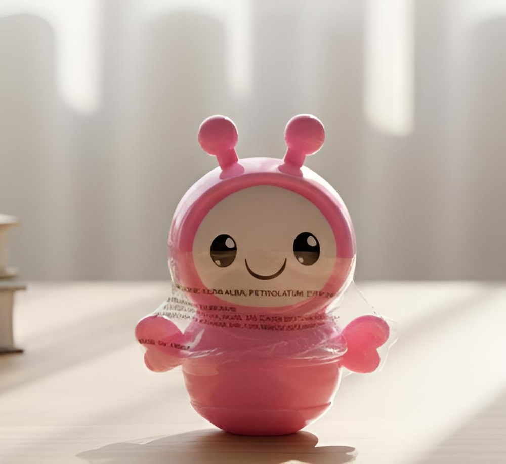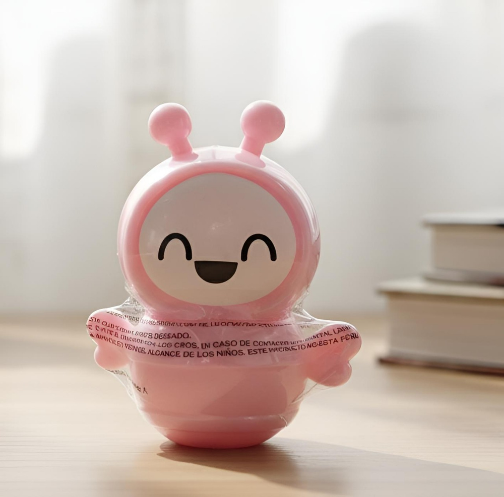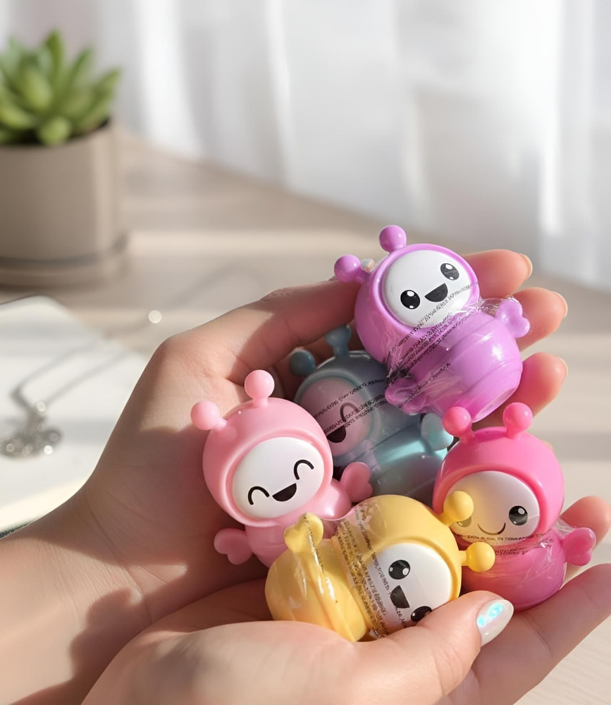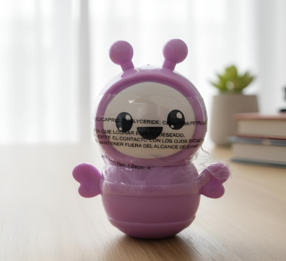 (Bálsamo labial en envase en forma de abejitas "4 Angels". Este bálsamo cuenta con 6 opciones diferentes. Cada uno con un rico aroma. Ideal para que tus labios brillen al natural y se mantengan hidratados).