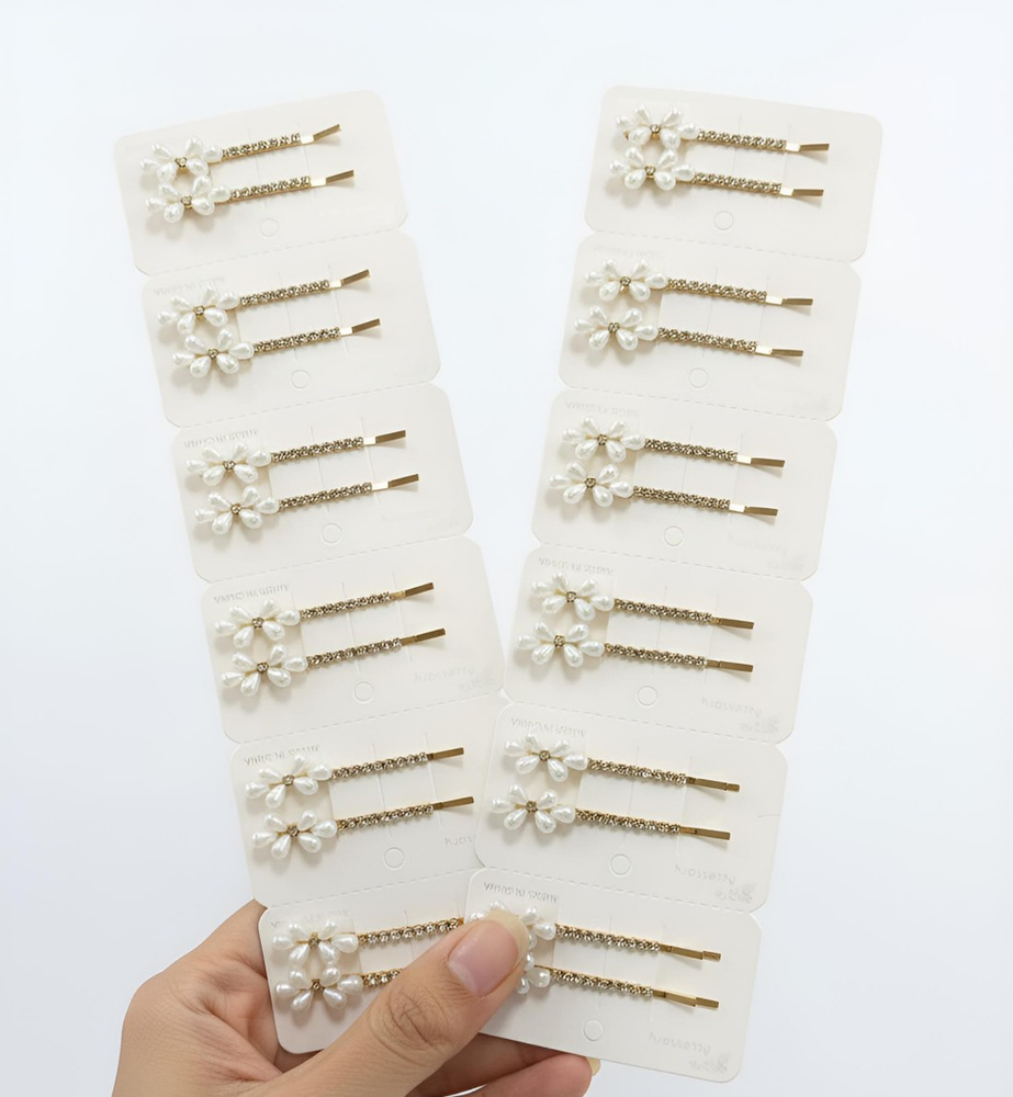 (Cada pack trae 12 blíster. Los blíster cuentan con 2 invisibles y diseño de strass y perlas con forma de flor).