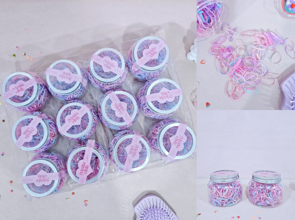 (Cada frasco cuenta con 400 gomitas aproximadamente de colores. Ideal para realizar peinados y destacar tu cabello).