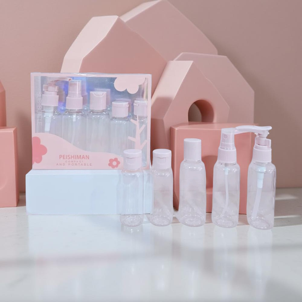 (Cada set cuenta con 1 dispensador, 1 rociador, 3 frascos para cremas).