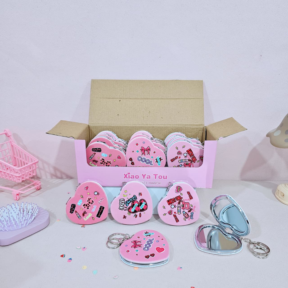 ( Llavero en forma de corazón con espejo, no tiene aumento, disponibles en varios diseños).