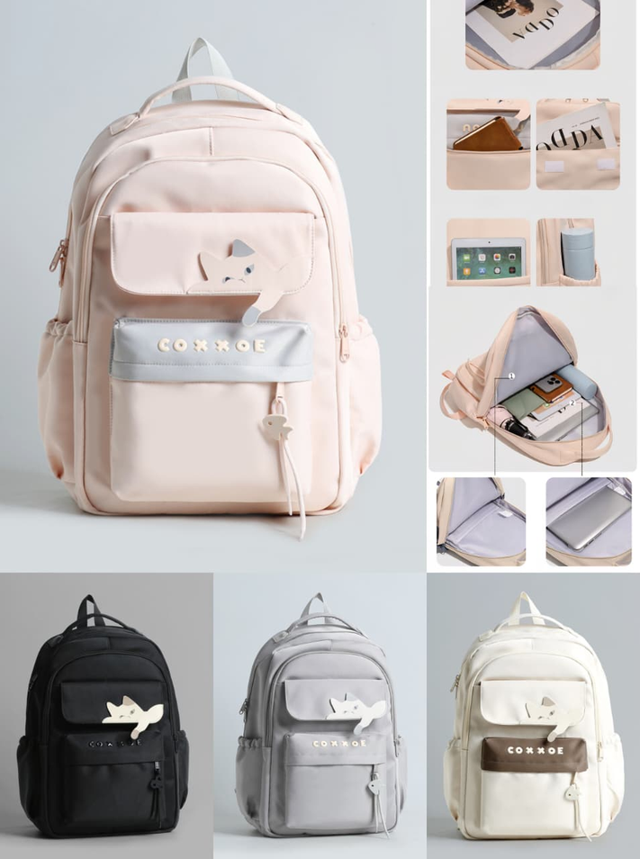 (Mochila escolar o casual. Dispone de un compartimiento principal con 1 bolsillos interno, 3 compartimientos frontales, 2 bolsillos laterales y un bolsillo trasero).