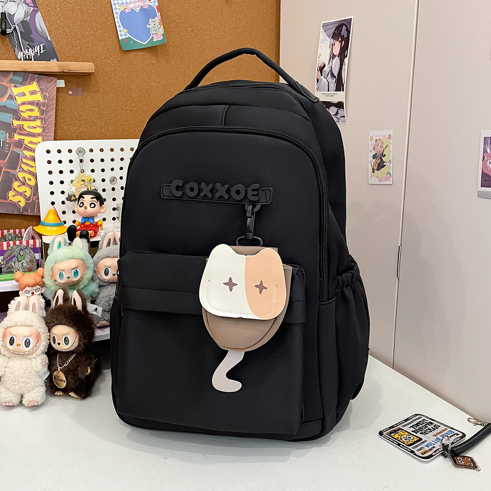 (Mochila escolar o casual. Dispone de un compartimiento principal con 1 bolsillos interno, 2 compartimientos frontales, 2 bolsillos laterales, un monedero y un bolsillo trasero).