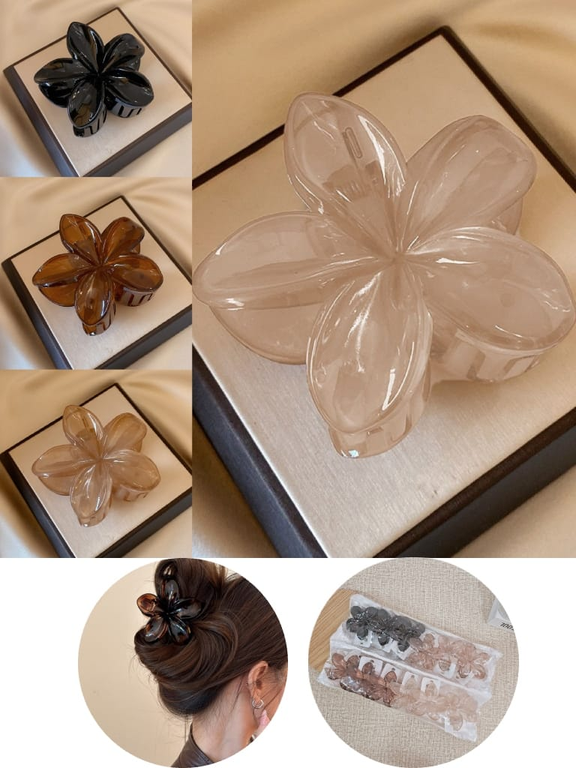 (Broches para el cabello en forma de flor en colores marrón, negro, rosa claro y marrón claro. Son un accesorio de moda popular para el cabello).