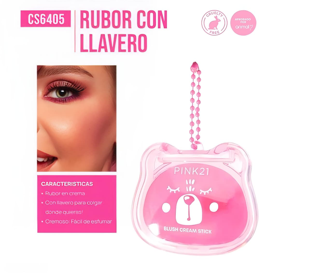 (Rubor en crema con llavero para transportarlo fácil. Ideal para añadir un toque de color y un efecto luminoso a las mejillas y los labios, proporcionando un aspecto natural y saludable. Su formato permite una aplicación y difuminación sencillas).