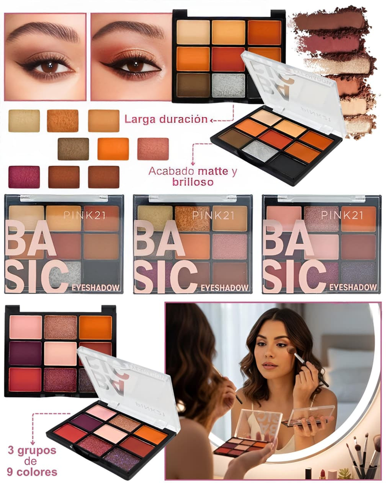(Paleta de sombras marca "Pink 21", vienen 5 diferentes sombras tanto mattes, como satinadas.Trae consigo un aplicador. 2 paletas diferentes a elección).