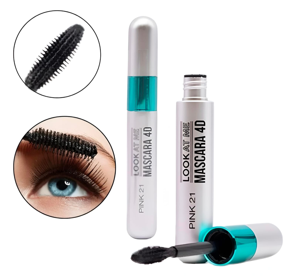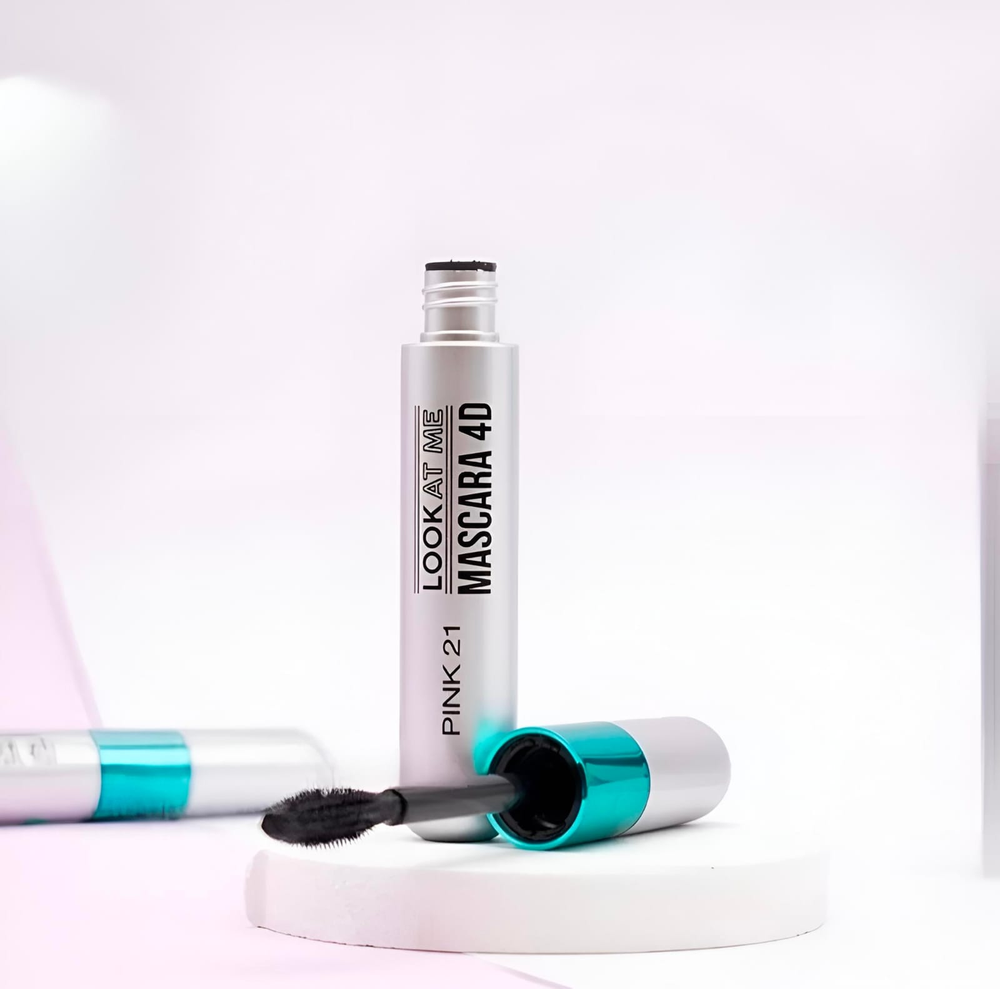 (Máscara de pestañas de Pink 21, un producto de maquillaje diseñado para definir, dar volumen y alargar las pestañas. La fórmula está diseñada para lograr pestañas con volumen, definición y alargamiento en una sola aplicación, evitando grumos con efecto 4D).