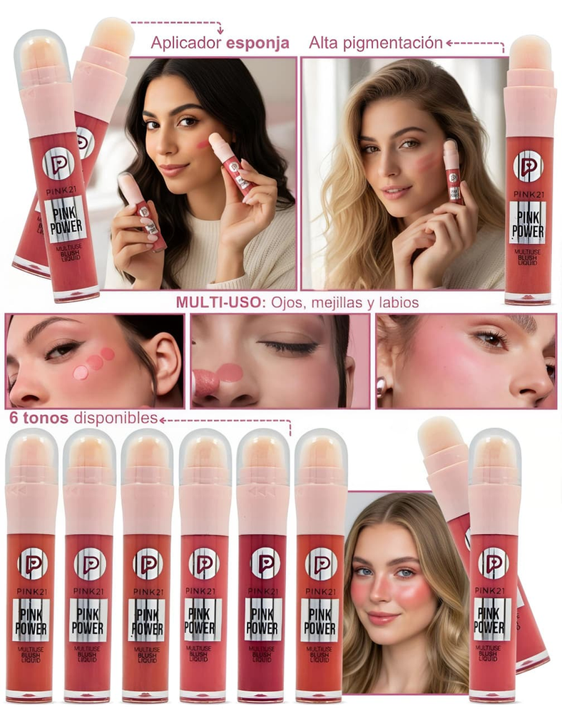 (Rubor Liquido versátil que se puede aplicar en las mejillas, labios y párpados para dar un toque de color natural).
