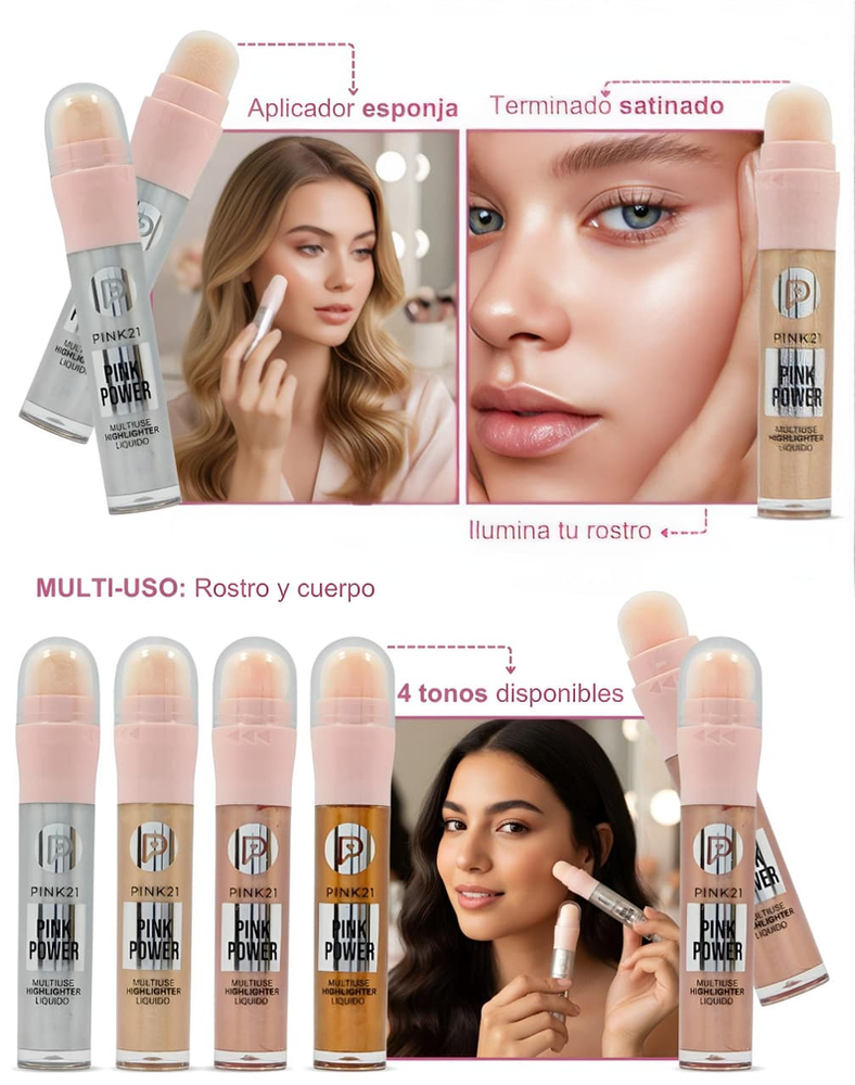 (Refleja la luz para resaltar los puntos altos del rostro y aportar luminosidad, creando un efecto radiante).