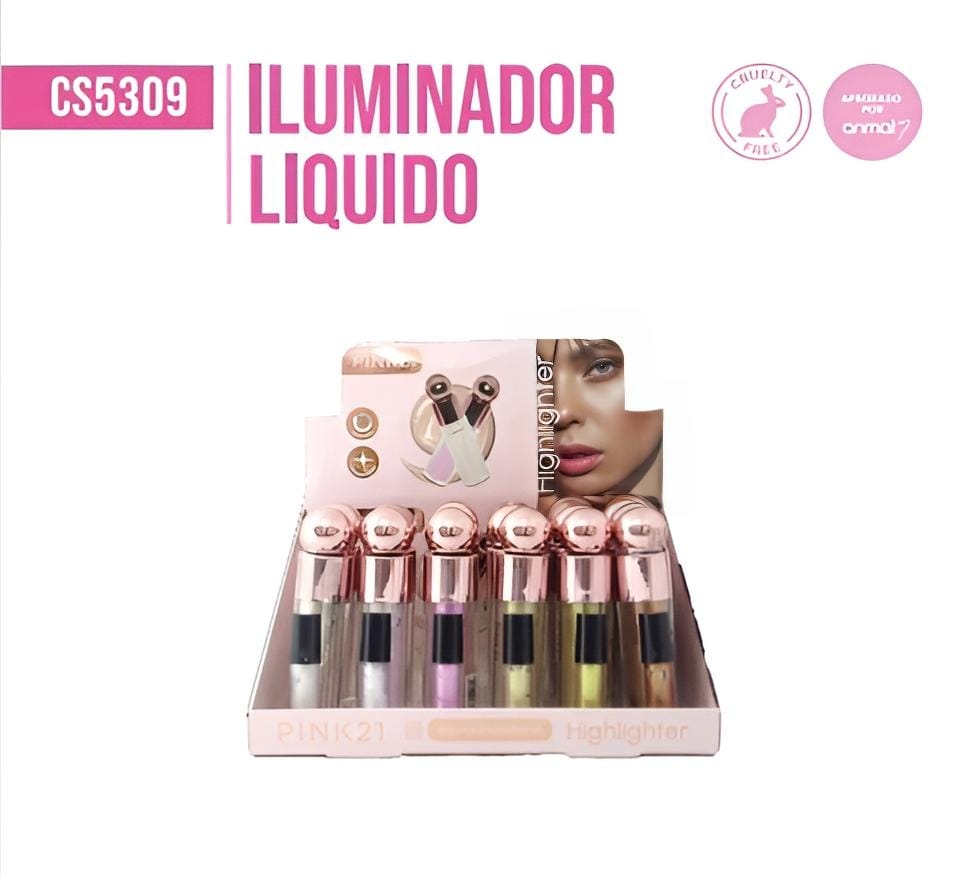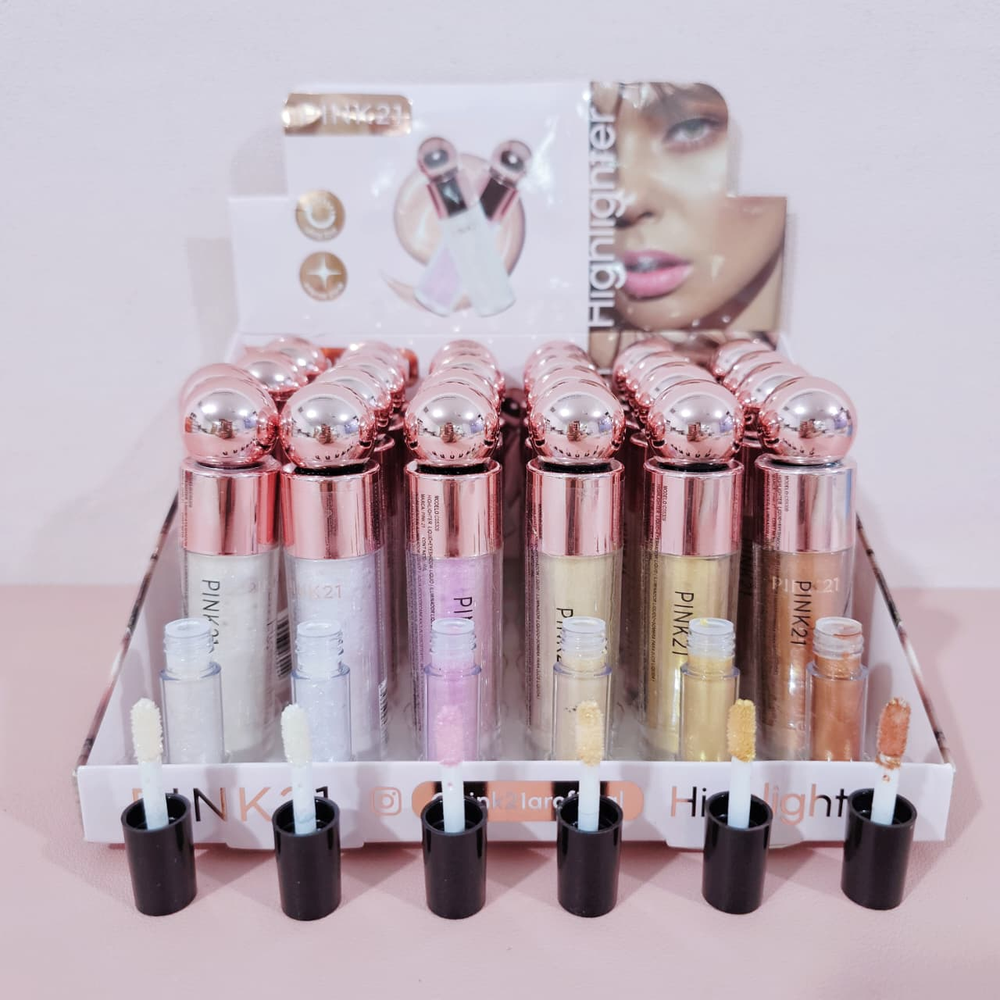 (Caja x24U. Sombra para Ojos Líquida "Pink 21". Ideal para dejarle un brillo único a tus ojos).