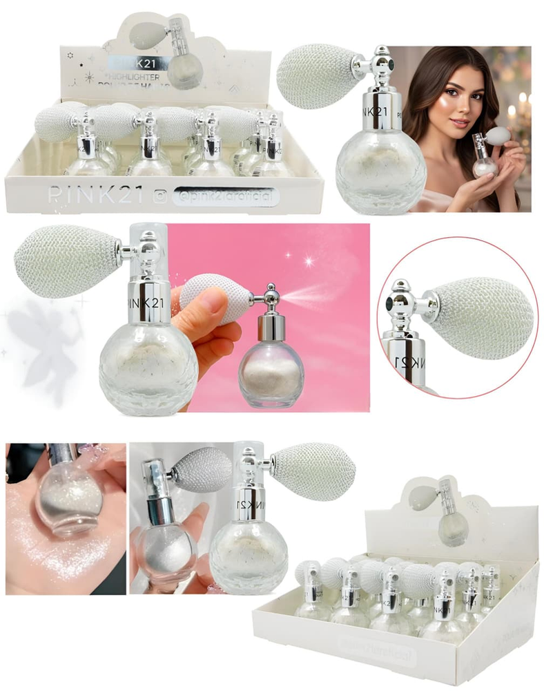 (Polvo de hadas presentación tipo perfume spray, ideal para rostro y cuerpo).