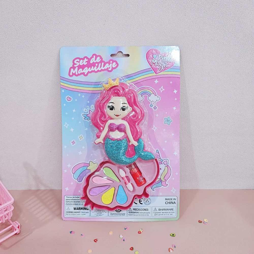 (Este set cuenta con una paleta de 5 sombras, un aplicador y un labial retráctil. Ideal para divertirse jugando).