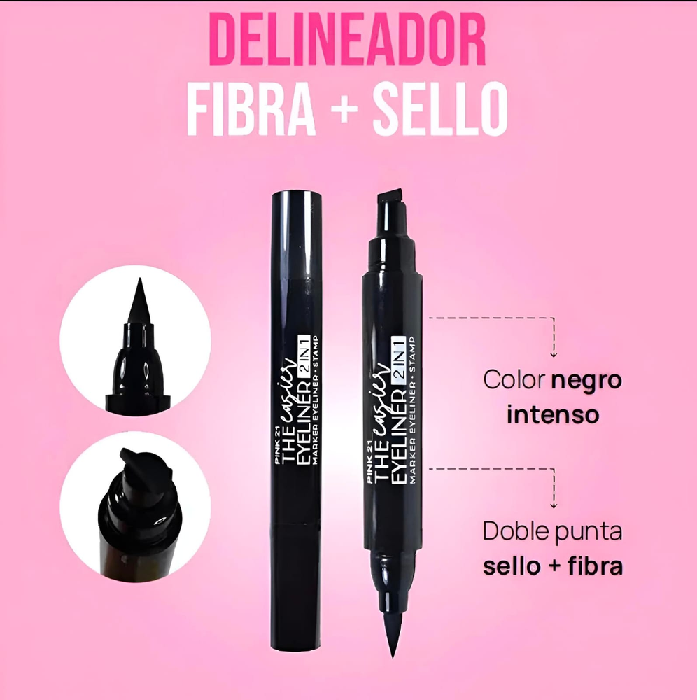 (Delineador 2 en 1 the Casier "Pink 21" negro intenso. Contiene punta con sello y otra con fibra).