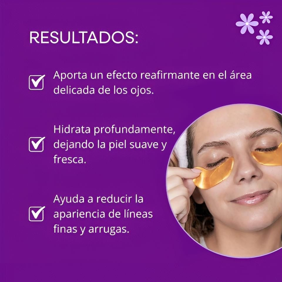 (Parches para ojos enriquecidos con colágeno. Hidratá, reafirmá y reducí los signos de fatiga y las arrugas en el contorno de ojos. Sentí la frescura y revitalización en cada uso, logrando una piel más suave y luminosa al instante).