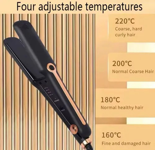 (Plancha de Pelo"OM" Keratina Pro es la herramienta ideal para lograr un cabello liso y brillante. Con una potencia de 45W, se calienta en solo 30 segundos. Cuenta con un regulador de temperatura que permite ajustar entre 160 °C y 220°C, adaptándose a diferentes tipos de cabello).
