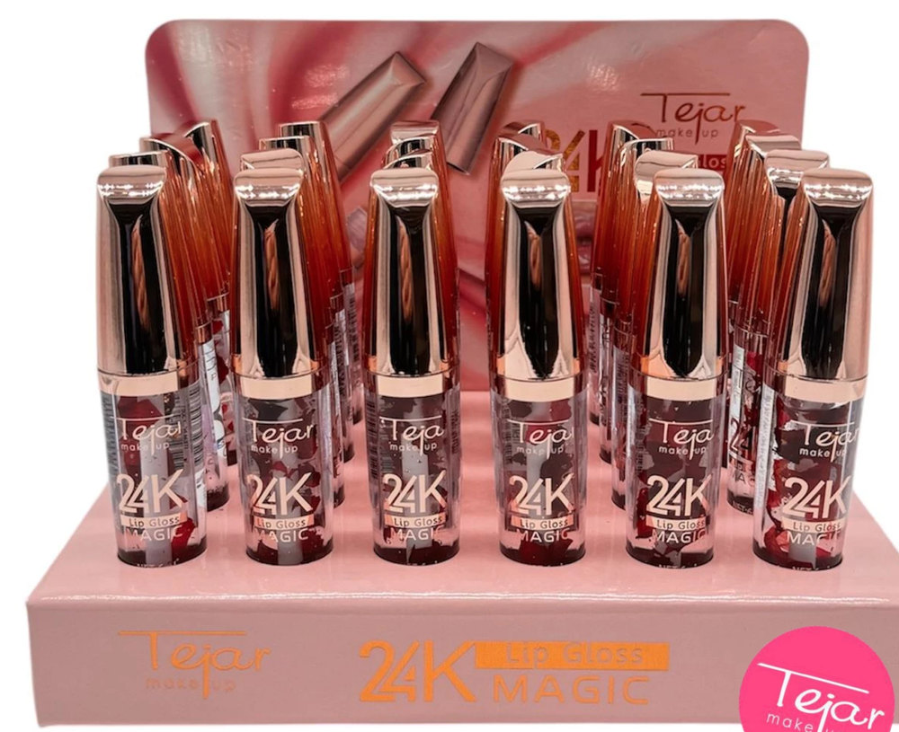 (Brillo Labial con 24K láminas de oro marca "Tejar", contine pétalos de rosas, deja un acabado radiante e hidratado).