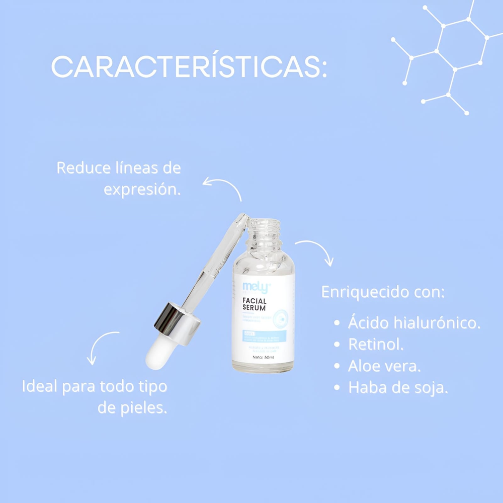 (Rejuvenece tu piel con este sérum 4 en 1 que combina ácido hialurónico, retinol, aloe vera y haba de soja. Hidrata profundamente, reducí líneas de expresión, mejora la textura y promové una piel luminosa y saludable. Ideal para todo tipo de pieles).