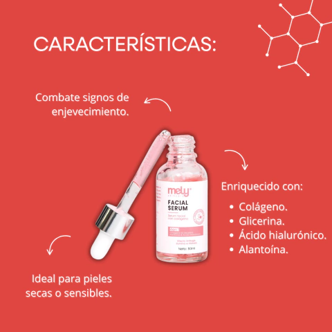 (Reafirma e hidrata intensamente tu piel con este sérum 4 en 1. Su fórmula de colágeno, glicerina, ácido hialurónico y alantoína restaura la elasticidad, suaviza arrugas y calma irritaciones, dejando tu rostro rejuvenecido y fresco).