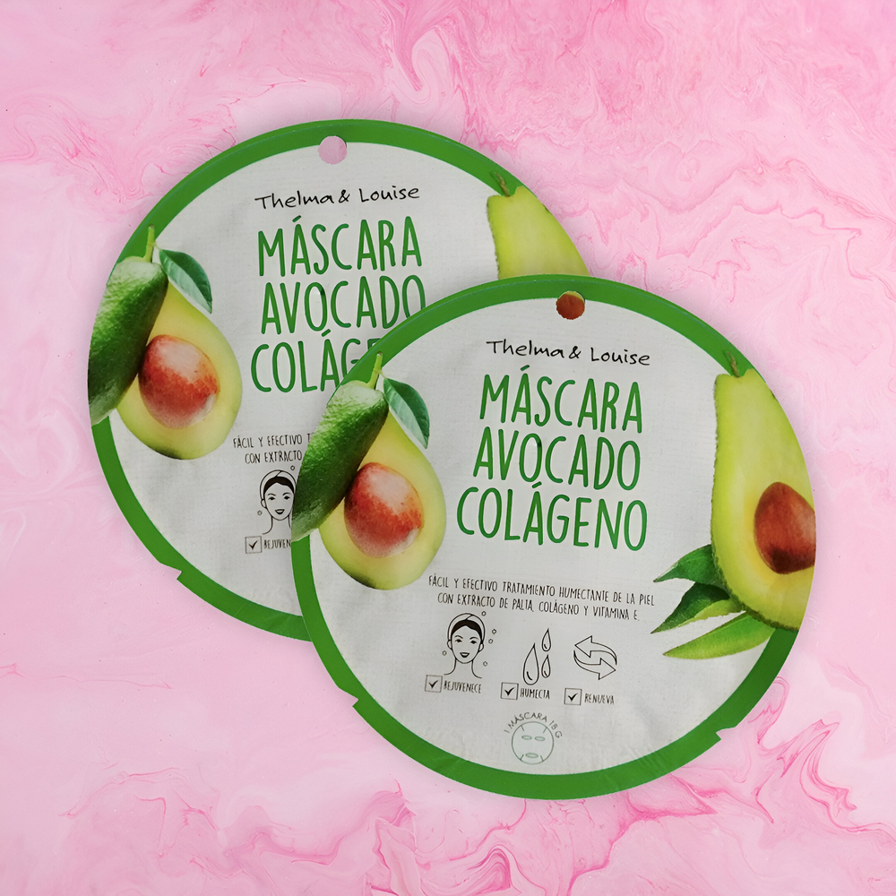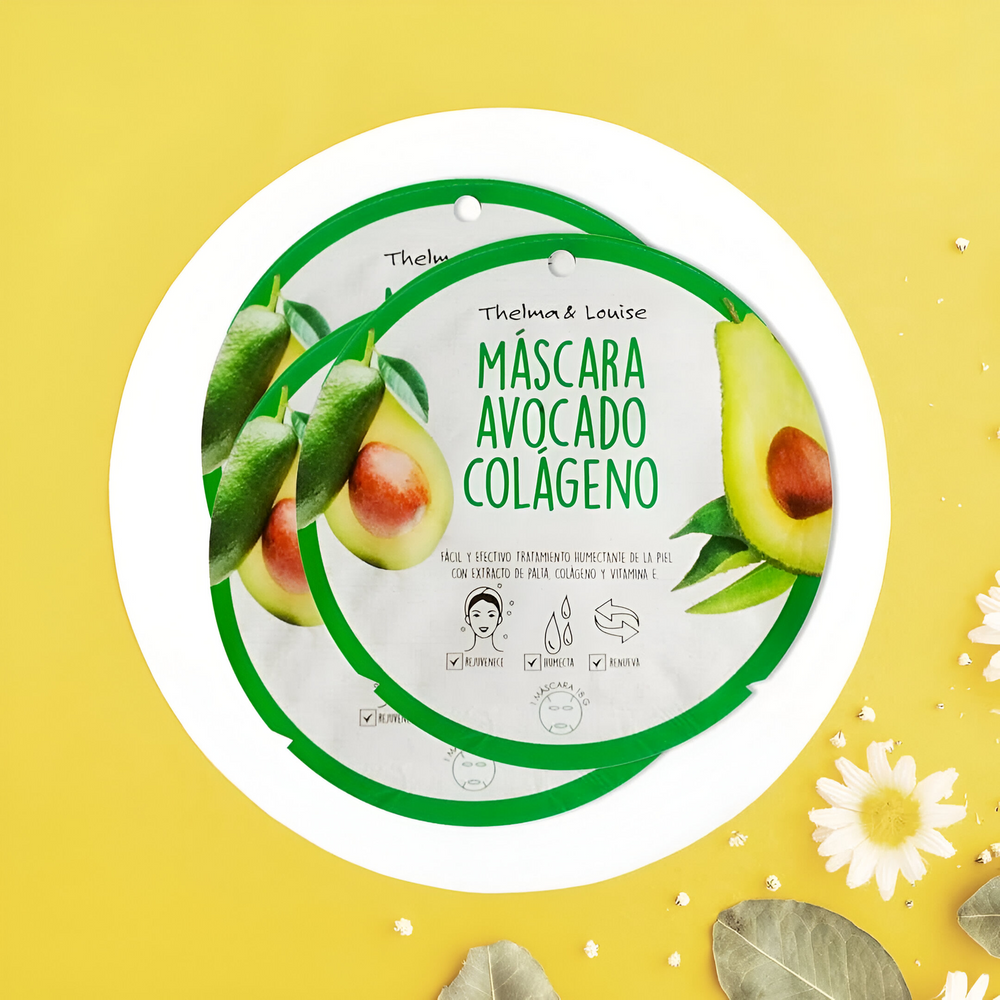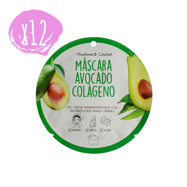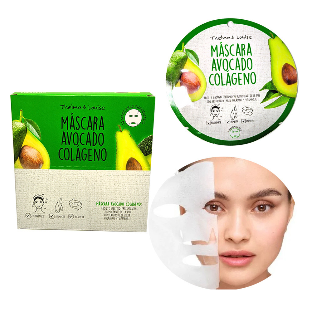 (Mascara avocado colágeno. Fácil y efectivo tratamiento humectante de la piel, nutre, revitaliza y refresca la piel. La tela de pulpa natural, maximiza la adhesión al rostro y ayuda a los poros a absorber por completo los beneficios de la mascara. Contiene extracto de palta, colágeno y vitamina E. Caja por 12 unidades de mascaras individuales. Articulo para el cuidado de la piel.)