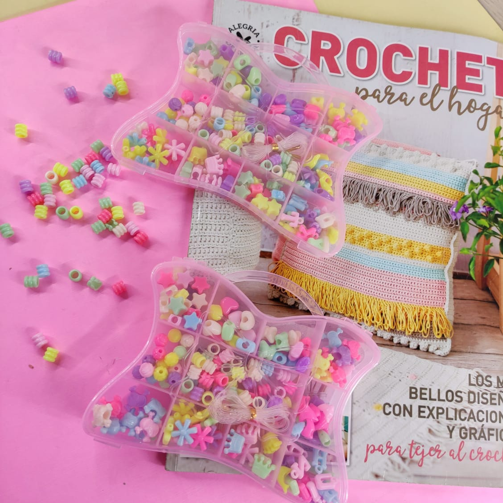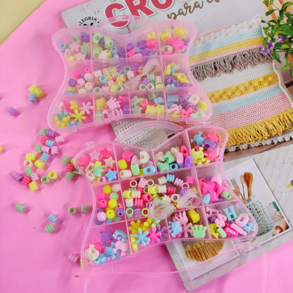 (kit para armar pulseras/collares. Caja con forma de valija con 11 divisiones. Ideal para crear y armar sus propios diseños a su gusto, incluye tanza y 150 pcs aprox. Categorizado en: Jugueteria).