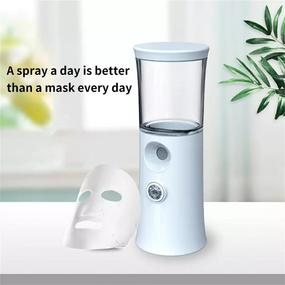 Se recomienda utilizar con agua termal, agua destilada-desmineralizada, o lociones a base de agua. No está permitido utilizarla con productos oleosos ya que dañarían el dispositivo. Recargable con USB, cable incluido. Tiempo de carga de 2-3 hs. Capacidad 30ml. Posee ademas en su interior luz led multicolor. Variedad de colores del producto: rosa, blanco. Categorizado en cosmética.)