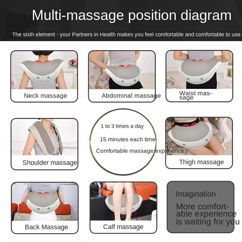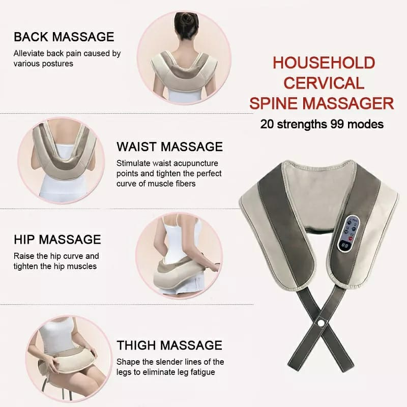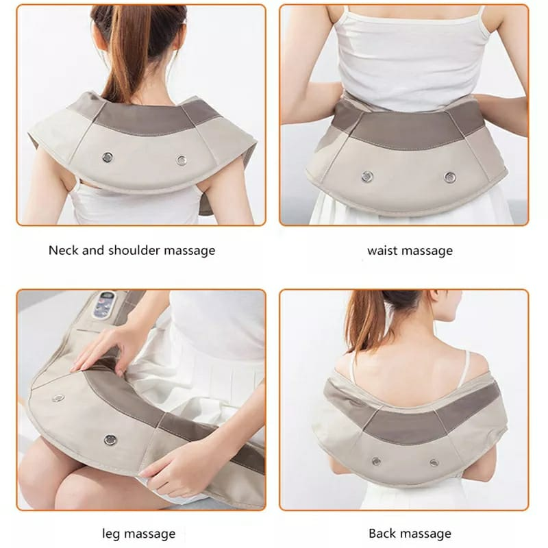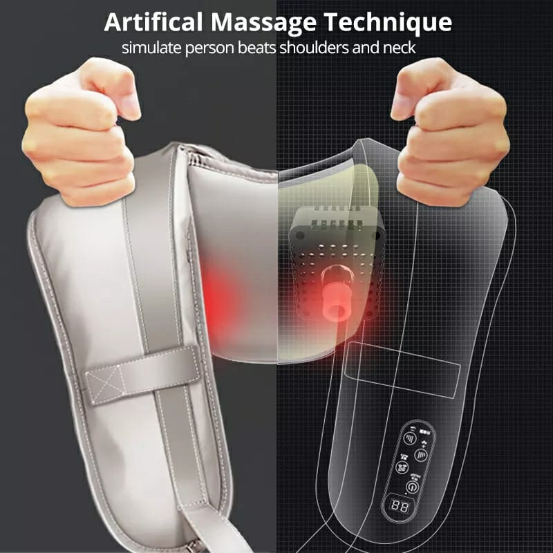 (Masajeador de manos libres para cuello, hombros, espalda, espalda baja, cadera, muslo y pierna. Trae un control para regular la intensidad del golpe y el ritmo.)