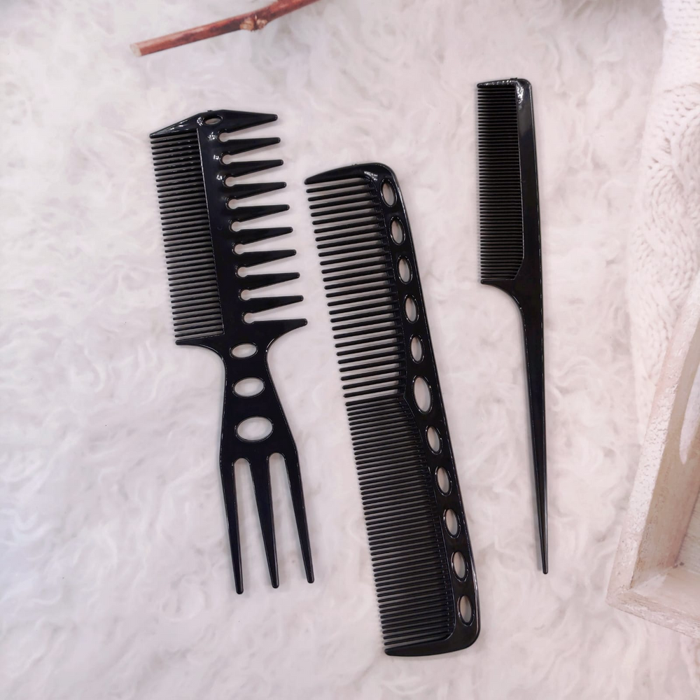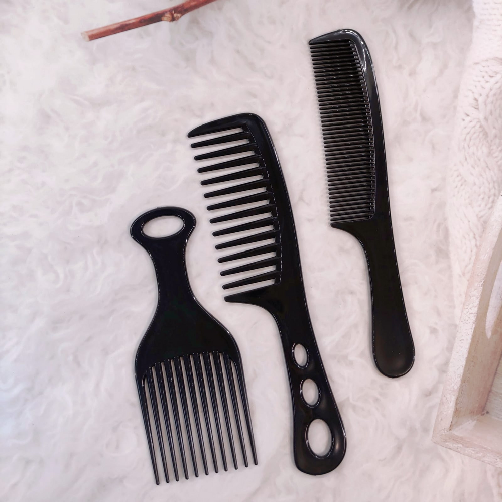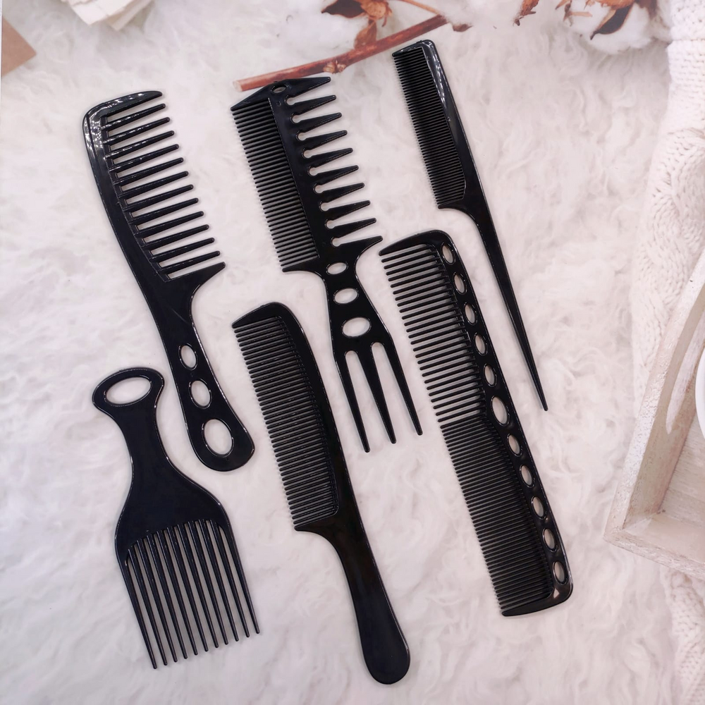 (Set de peines con 6 unidades, son de plástico en color negro cada uno con una función distinta.)