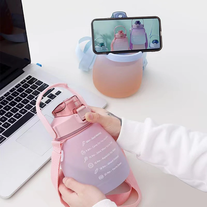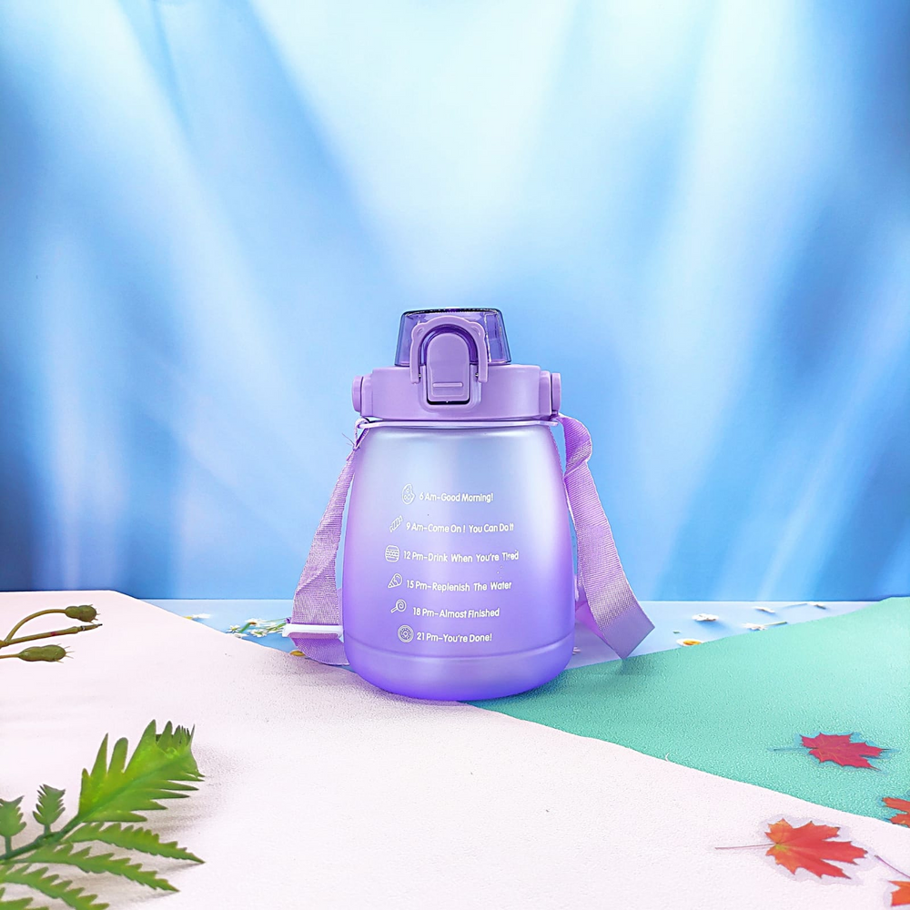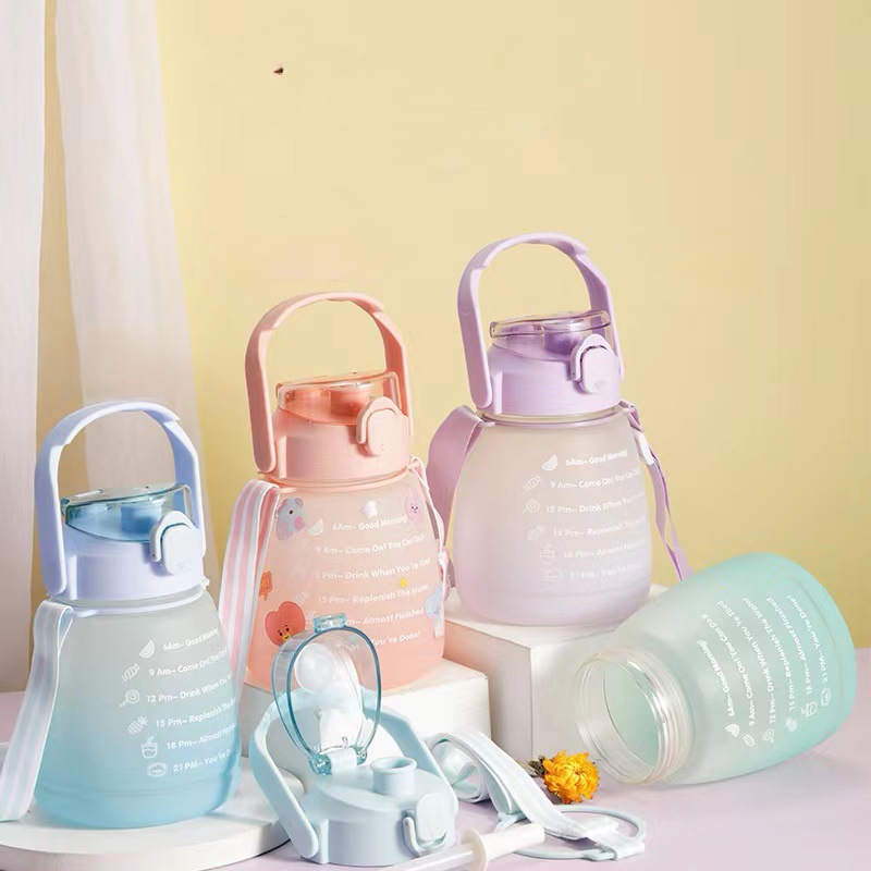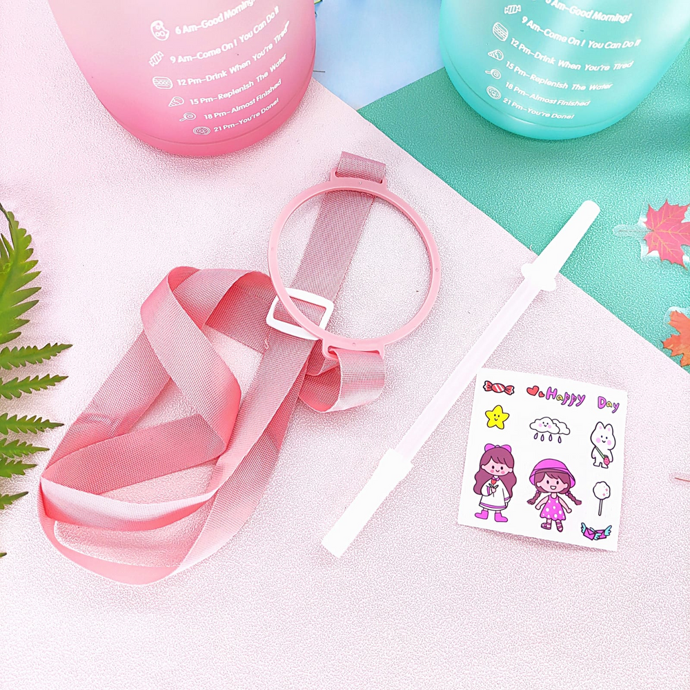 (Botella Deportiva hermosos colores degradado, capacidad 1L Cuenta con un sorbete con pico debatible, tapa con traba y manija para un fácil traslado; la manija está diseñada con una curva que se puede utilizar como porta celular. Trae consigo stickers super bonitos para pegar donde desees. Tiempo marcados en la botella: el marcador de tiempo motivacional te recuerda beber suficiente agua durante todo el día).
