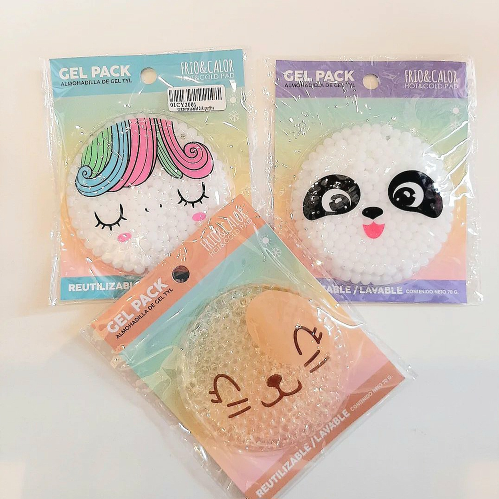 (Almohadilla de hidrogel, apto para usarlo frio reposando en la heladera, tibio sumergiéndole en agua caliente o caliente poniéndolo en microondas x 15seg.).